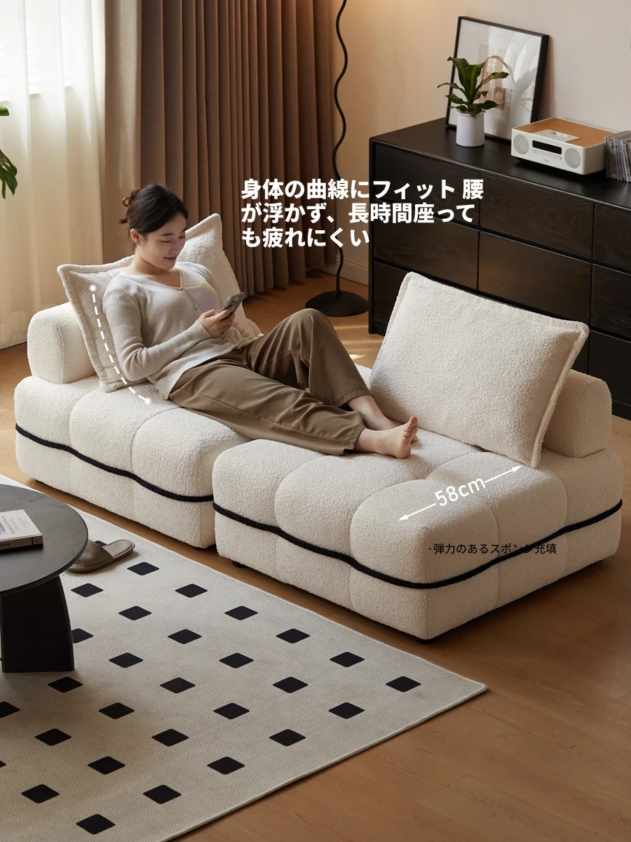 源氏木語のテクノロジー布製ソファ—クリーミーな風合いが魅力のリビング用スクエアソファ!シンプルでコンパクト、小型住宅にもぴったり。ホワイトコットンキャンディーソファで癒しの空間を演出!
