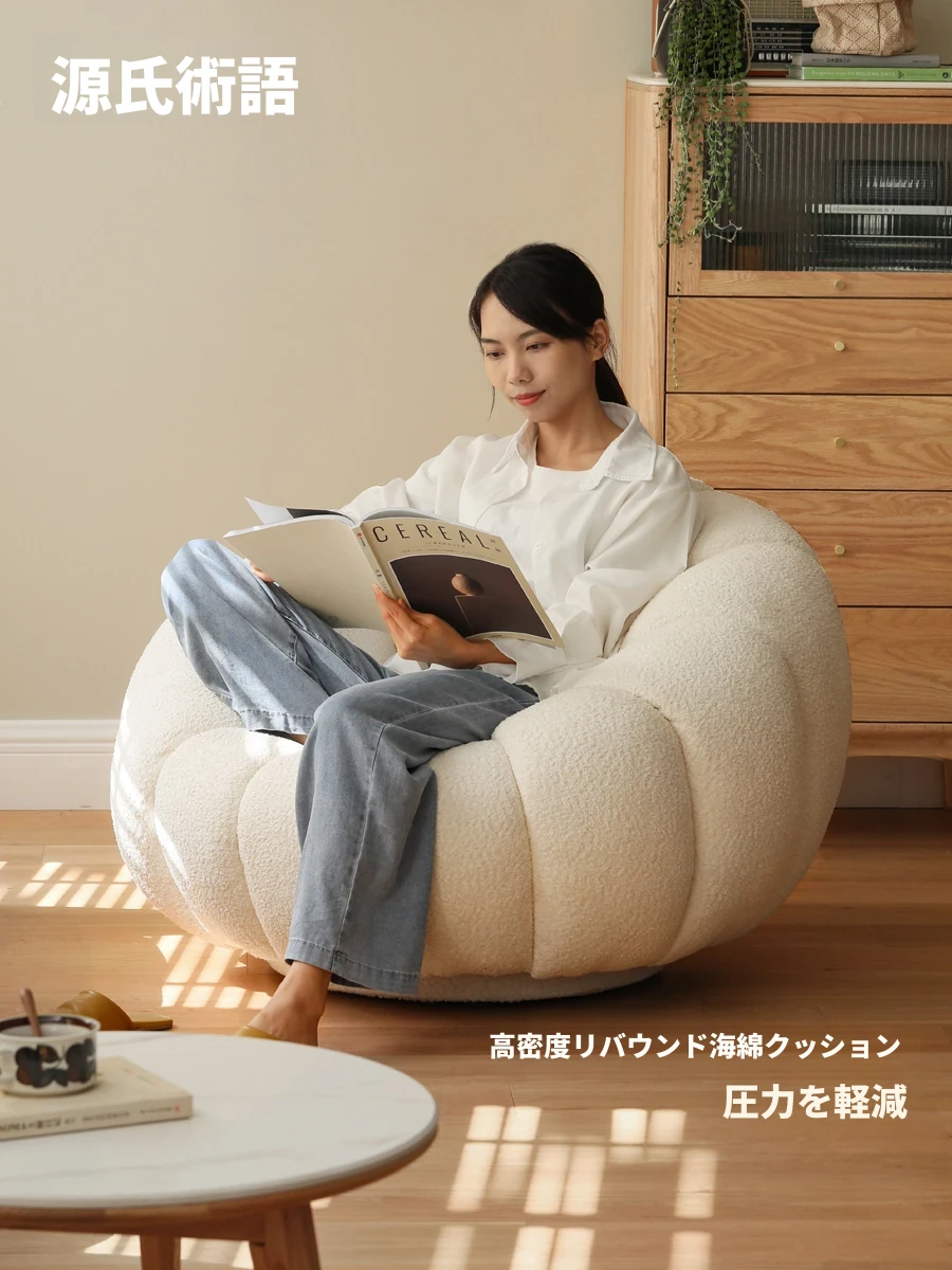 源氏木语ホワイトラビットファーのパンプキンチェア - リビングやバルコニーに最適なリラックス一人掛けソファ、寝室でも使えるおしゃれで快適なラクーンチェア!