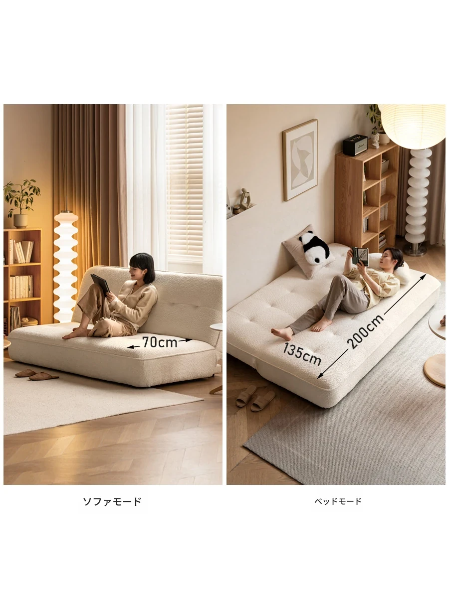 源氏木語の布製ソファベッド - ホワイトクリーム色の多用途ソファ!リビングや狭い部屋にぴったり。スタイリッシュなデザインで、座ったり寝転んだり、どんなシーンにも対応します。快適な空間を演出してくれるアイテムです!