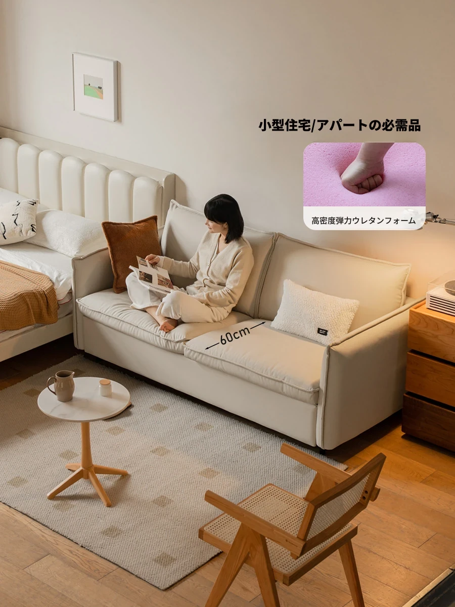源氏木語 アパートメント用 ソファベッド クリーンなホワイト&クリーム風 ファンクショナルな伸縮式ソファ 小型スペース向け ネコ爪防止レザー使用 スタイリッシュで快適なリビングルームに最適!