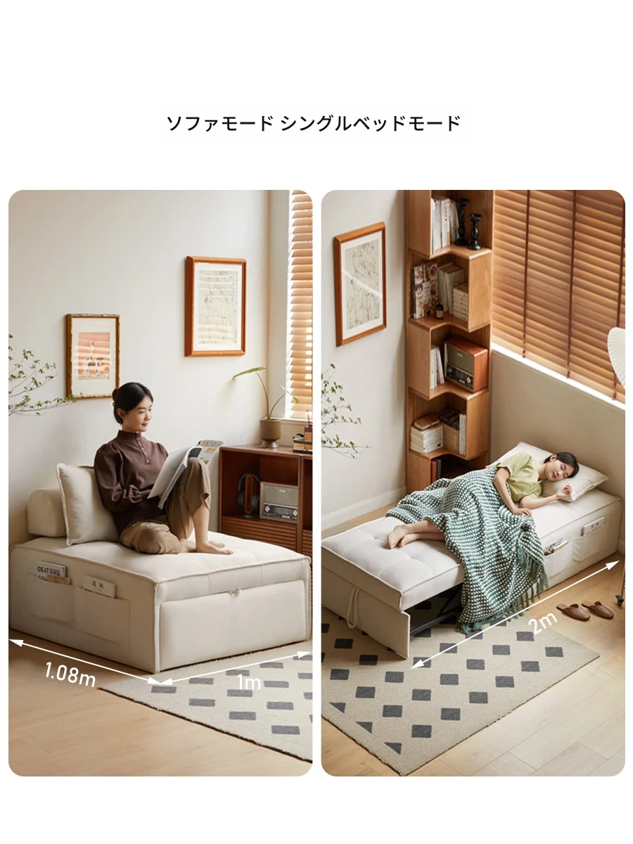源氏木语のクリーミー風ソファベッド - スタイリッシュで機能的なリビング用、シングルサイズの伸縮式マルチファンクションベッド!小さなスペースにもぴったりで、快適な眠りを提供します。