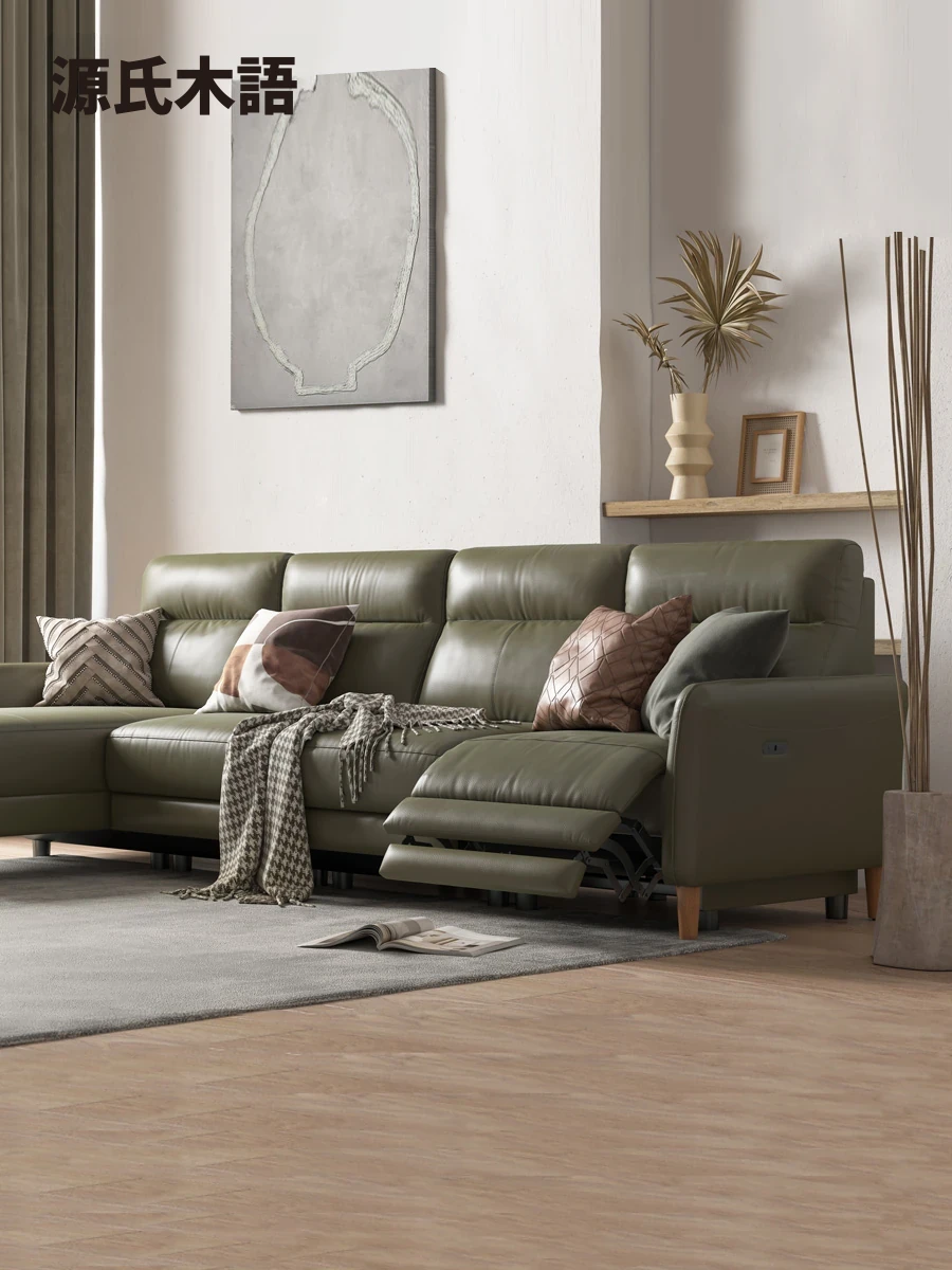 源氏木语本革電動ソファ|イタリアンスタイルのリクライニング大型ブラックレザー|壁掛けフリーで多機能なモダンリビング向けソファ
