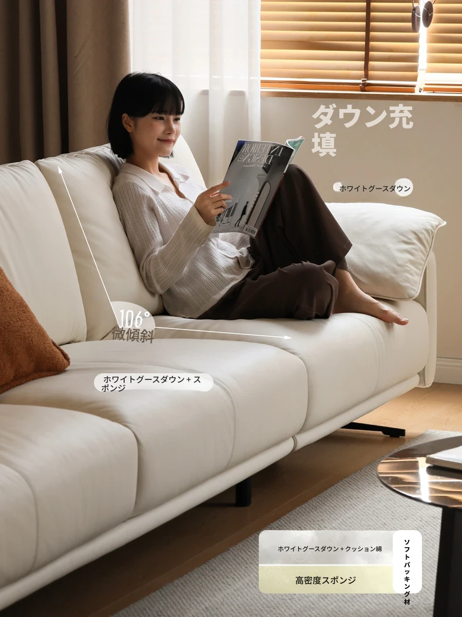 源氏木语 本革ソファ リビング用 一等グレードの黄牛皮製 ストレートタイプ ソファ ホワイト 家庭用 イタリアンダウンソファ 高級感あふれる快適なひとときをお届けします!
