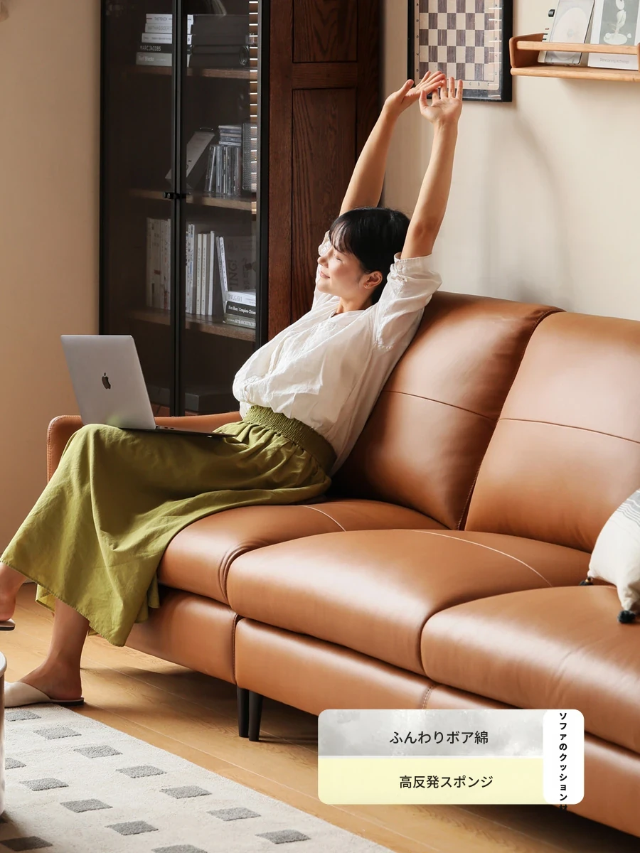 源氏木語の高級フルグレインレザーソファ|北欧モダンデザインの真皮ソファ|狭いお部屋にもピッタリな1人掛け・3人掛けコンビネーション家具!心地よい座り心地をお楽しみください。