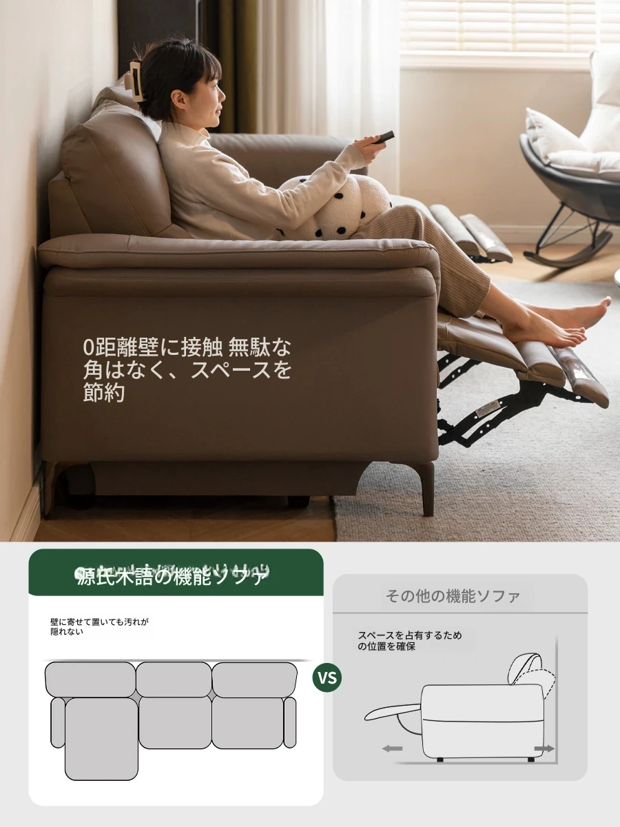 源氏木语 ゼロ壁寄せ電動ソファー - リビングに最適!高級本革使用、マルチ機能で座り心地抜群の伸縮式ソファー。ゆったりとした空間を演出し、くつろぎのひとときを提供します。