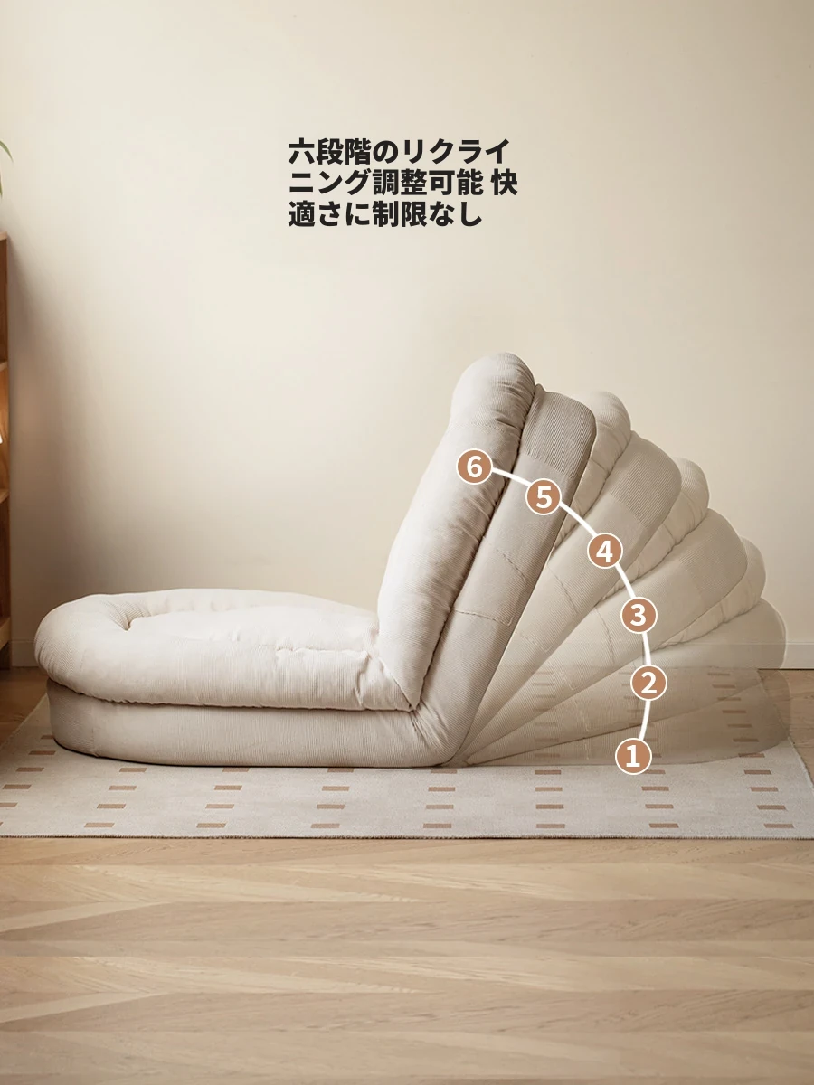 源氏木语 クラシックな布張りのソファチェア - リビングにぴったりなクリーム風のリクライニングチェア、バルコニーにも最適なラウンジチェア!調節可能な小型ソファで、くつろぎの時間をお楽しみください。
