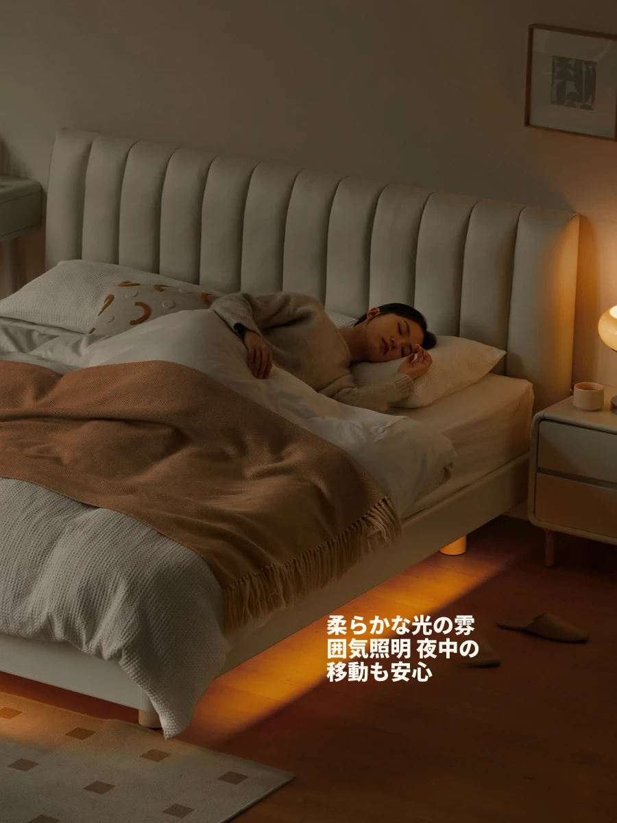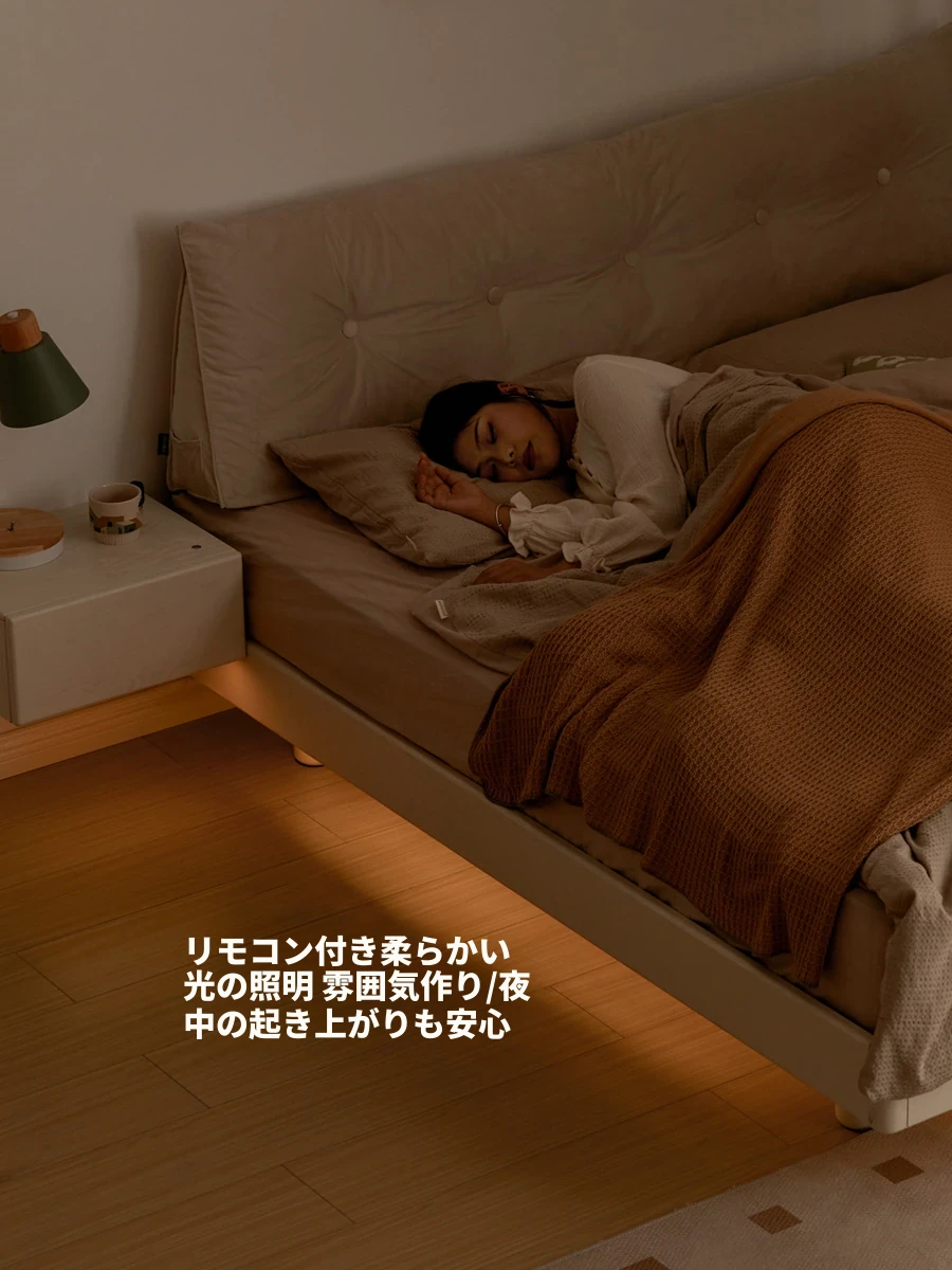 源氏木语のクリーミーな象耳ベッド|スタイリッシュなテクノロジー布製ソフトパック|寝室にぴったりのムードライト付き浮遊ベッド【快適な睡眠空間を演出】