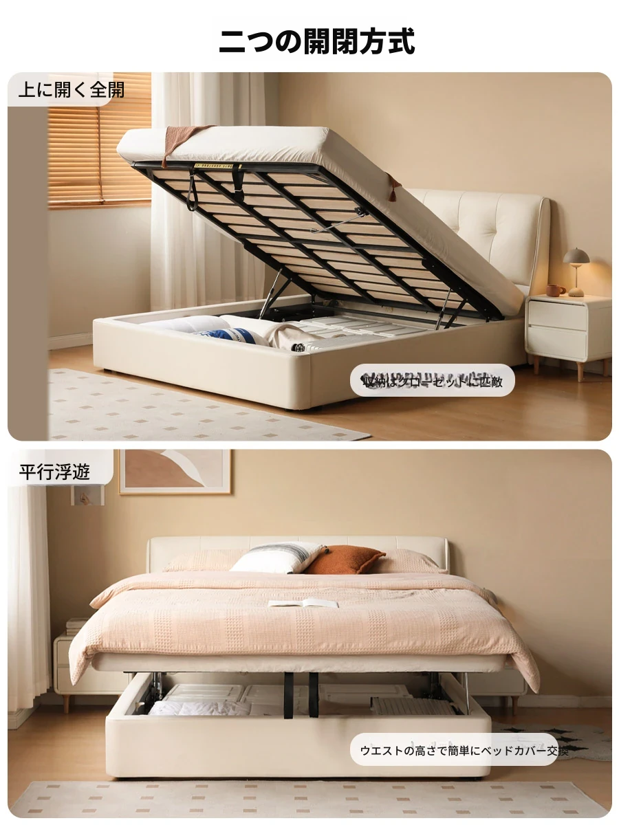 源氏木语のモダンな真皮収納ベッド - クリーミーな風合いのソフトパッキングダブルベッド、ホワイトカラーでおしゃれな寝室に最適!