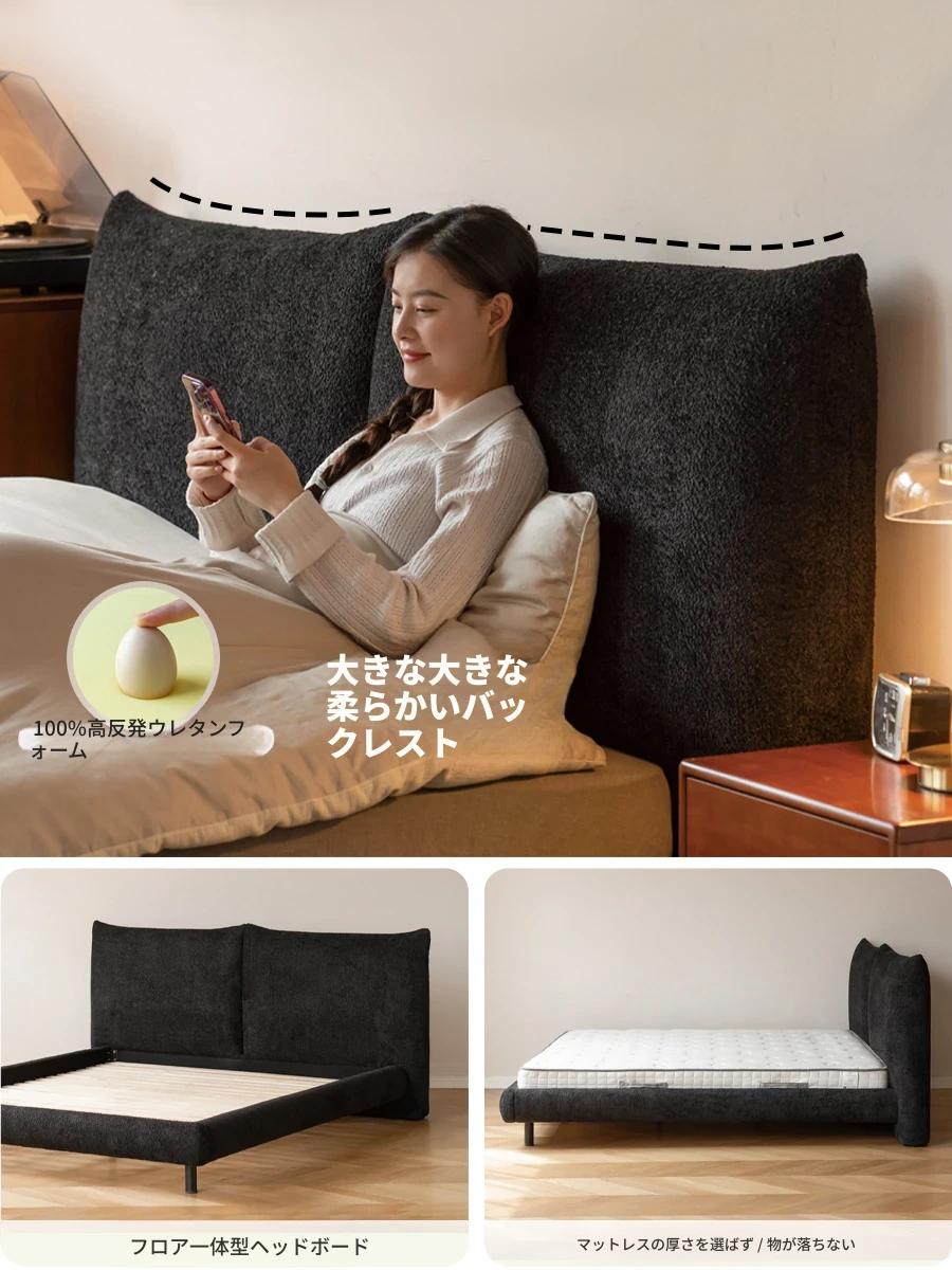 源氏木语 布製ベッド モダンシンプル 北欧スタイル 大型ベッド 洗えるデザイン 大きな耳のソフトパッケージ付き ダブルベッド - 快適な眠りとスタイリッシュな空間を演出!