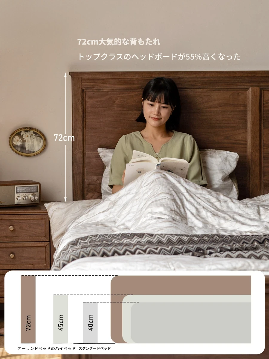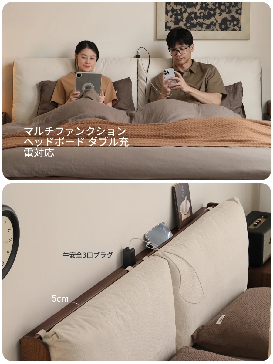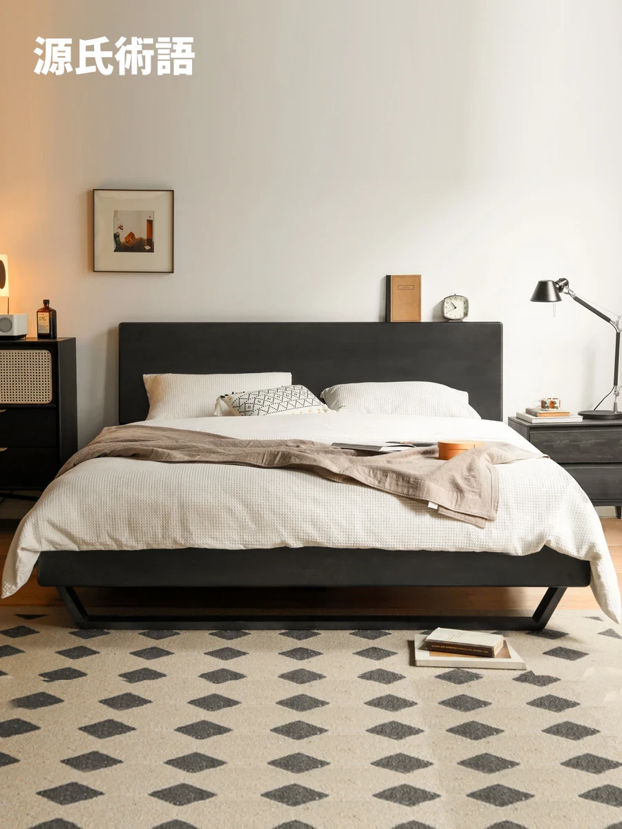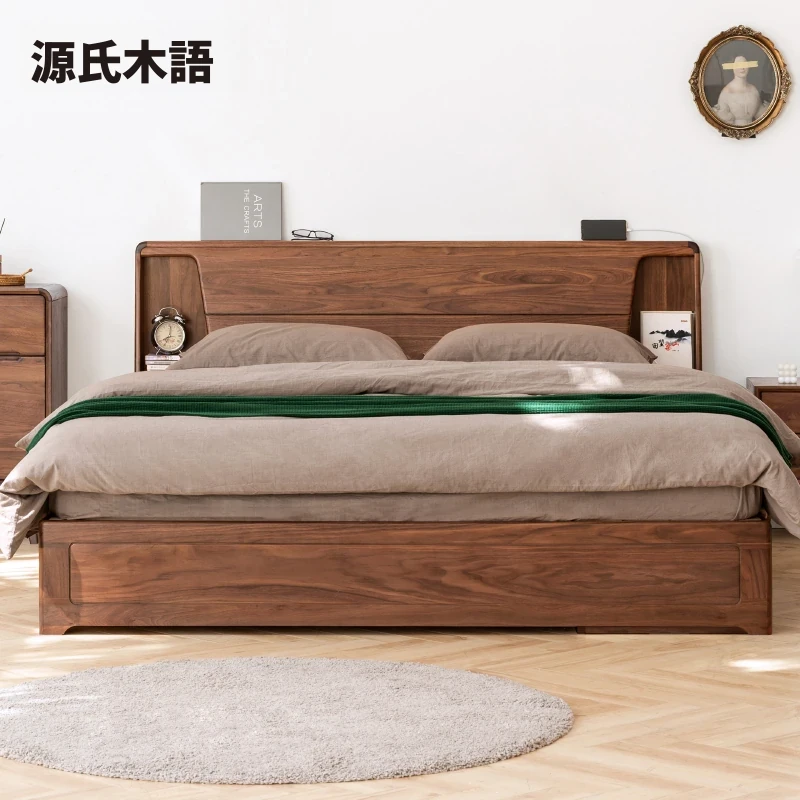 源氏木语の無垢材使用!ブラックウォールナット製のソフトパッキングダブルベッド。シンプルでモダンなデザイン、居心地抜群の寝室にぴったり。プライバシーを大切にし、安心して眠れるホットな選択肢!