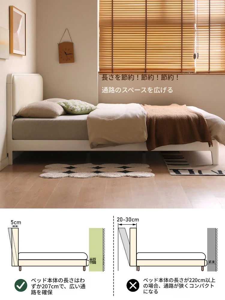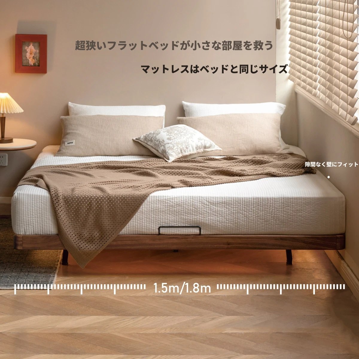 源氏木语の天然木ベッド - ヘッドボードなしのタタミスタイル、コンパクトでおしゃれな小型二人用ベッド、クリーミーホワイトの浮遊感あるデザインでお部屋を明るく演出!