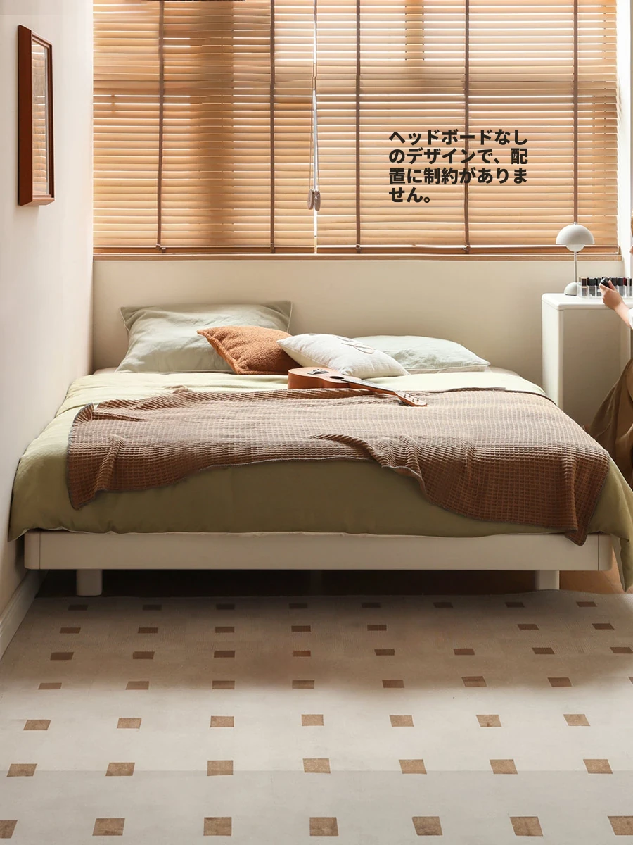 源氏木語 クリーム風テクスチャー布製ベッド | ヘッドボードなしのモダンな和室スタイル | シンプルで洗練された白いダブルベッド | あなたの夢の寝室を演出!