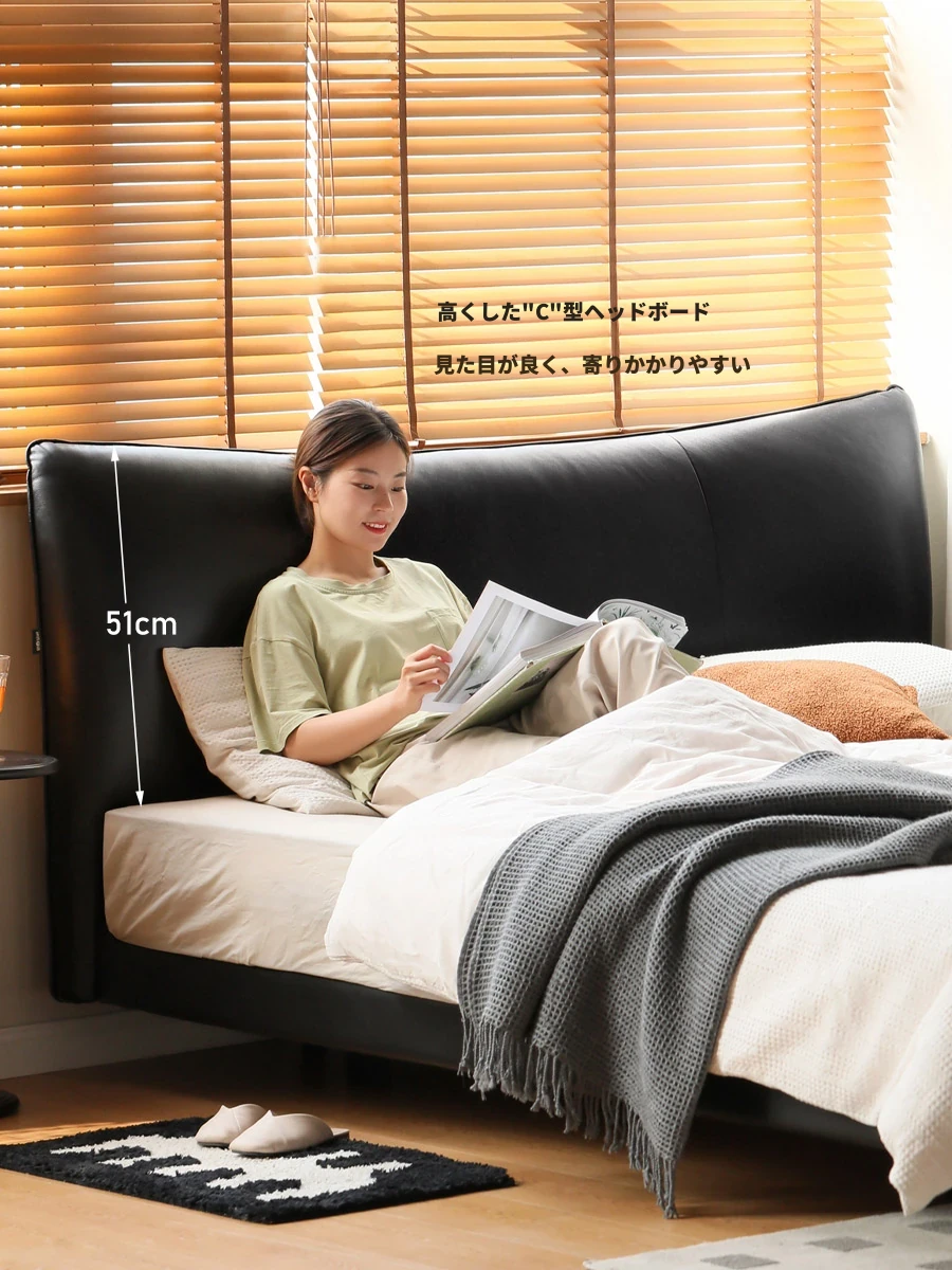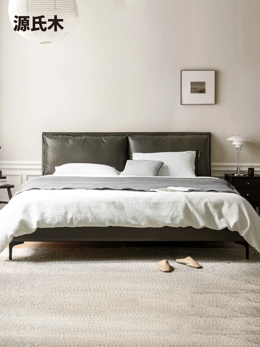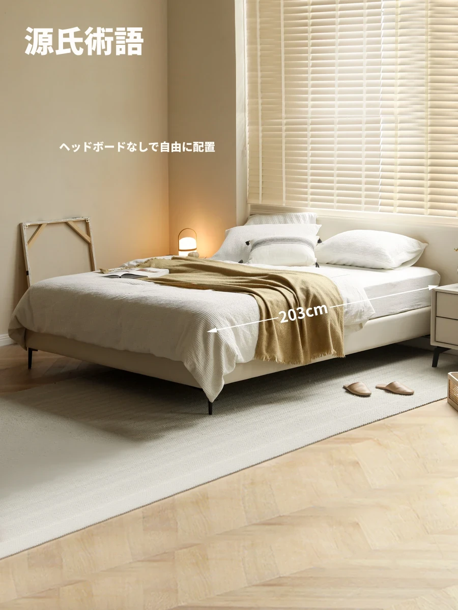 源氏木语 本革を使用したモダン軽奢ベッド|主寝室にぴったりのダブルベッド|シンプルで浮遊感漂うデザインのソフトパッケージベッド
