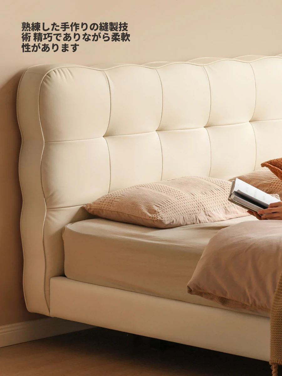 源氏木语 本革製 モダン シンプル 大人の寝室用 ベッド クラシッククリームカラー 雲のようなふわふわデザイン ソフトパッケージ ダブルベッド