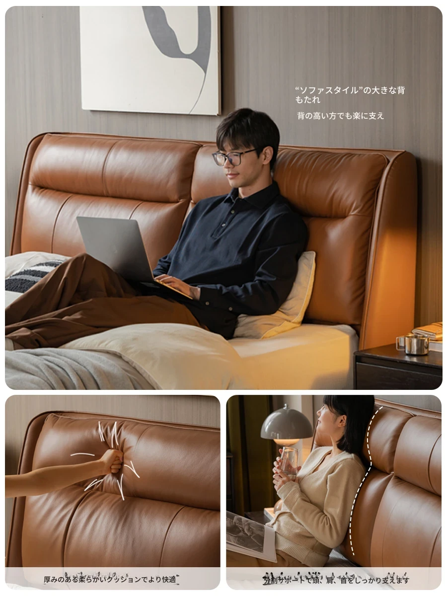 源氏木语 本革製ベッド 繊細でラグジュアリーなトップグレード牛革ソフトパック ベッドルームに最適 現代的でシンプルなデザイン 互いに邪魔しないダブルベッドで上質な睡眠を実現!