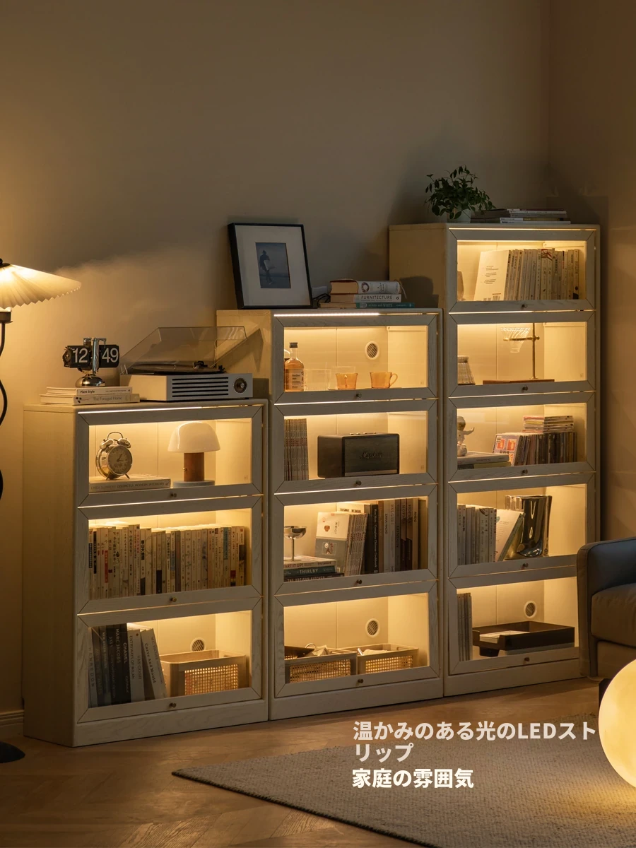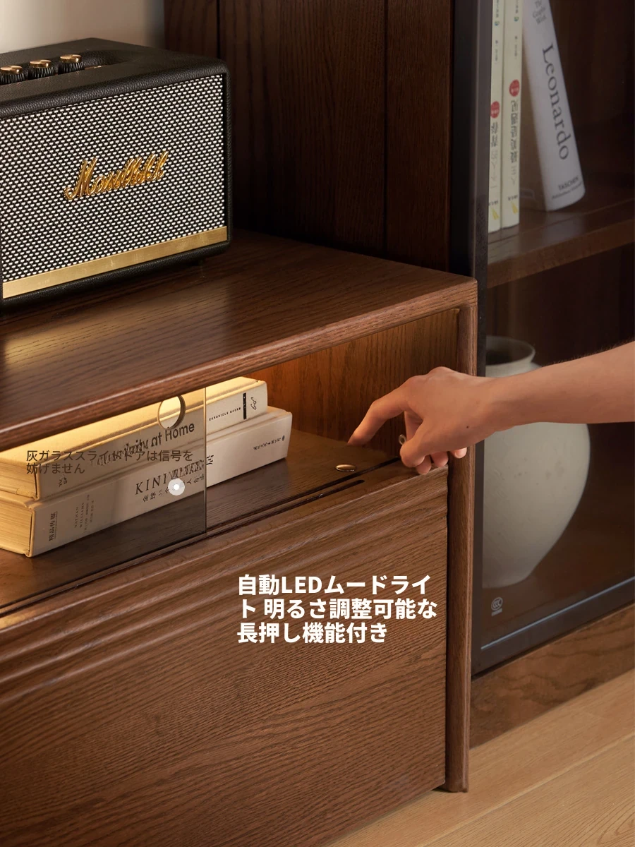 源氏木语本格的無垢材書棚!クリーミーな雰囲気のガラス扉付きディスプレイキャビネット。おしゃれなホワイトの収納家具で、壁にぴったりフィットし、部屋をより魅力的に演出します。