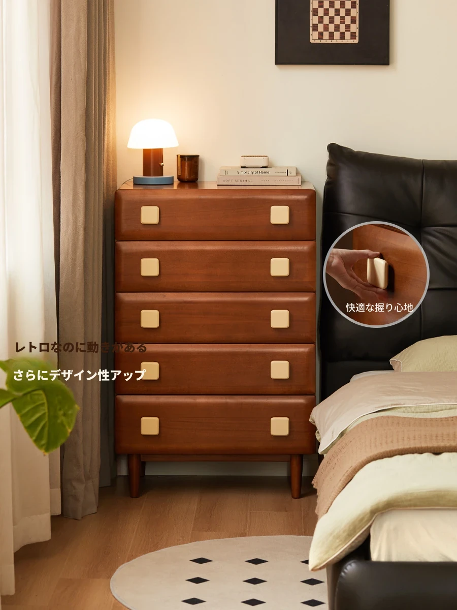 源氏木語の本格木製ヴィンテージチェスト、5段のカラフルなデザインで、おしゃれな寝室や小さな部屋にもぴったりなベッドサイドストレージキャビネット。収納力抜群で、インテリアを華やかに演出します!