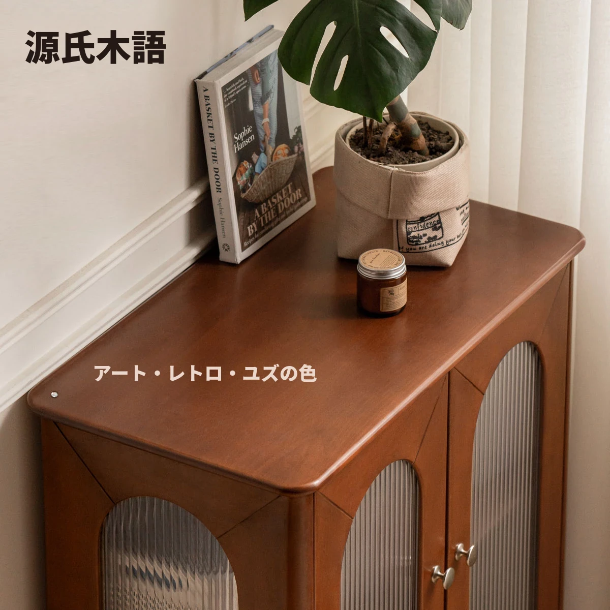 源氏木语レトロチェリーウッド製の実木カフェサイドボード・シンプルな収納キャビネット・家庭用オーガナイザー・ヴィンテージ風ダイニングキャビネット【魅力的なデザインでお部屋を華やかに】