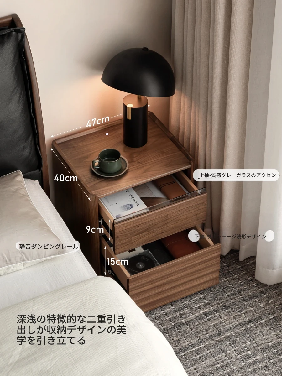 源氏木语ブラックウォールナット無垢材ナイトスタンド・シンプルなベッドサイドキャビネット・家庭用フロアキャビネット・スタイリッシュなブラックラベル家具で、あなたの寝室をおしゃれにアップグレード!