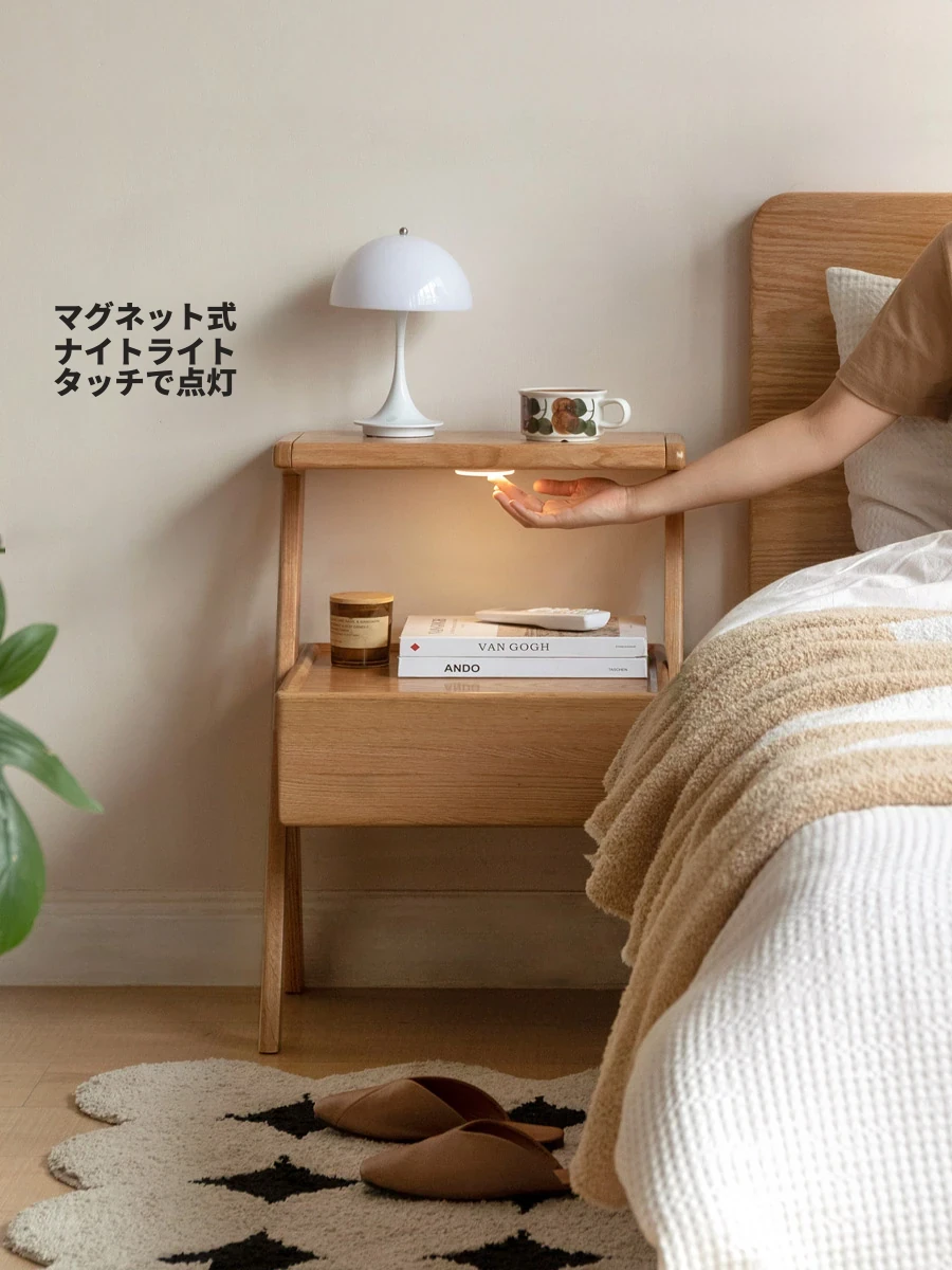 源氏木語の高級オーク材製ナイトテーブル - おしゃれで機能的な収納スペースを実現!ベッドサイドやソファ横にぴったりの一体型デザイン、あなたの寝室をもっと素敵に!