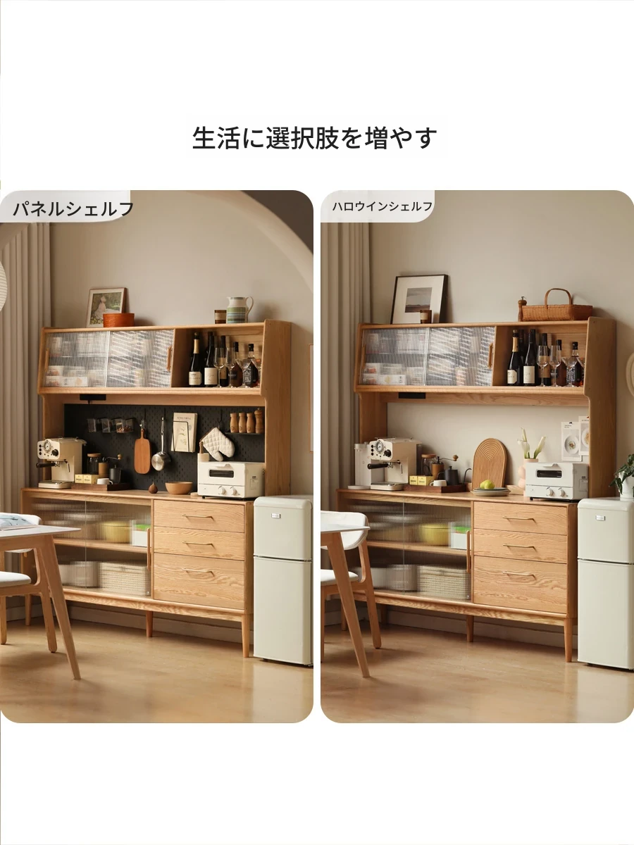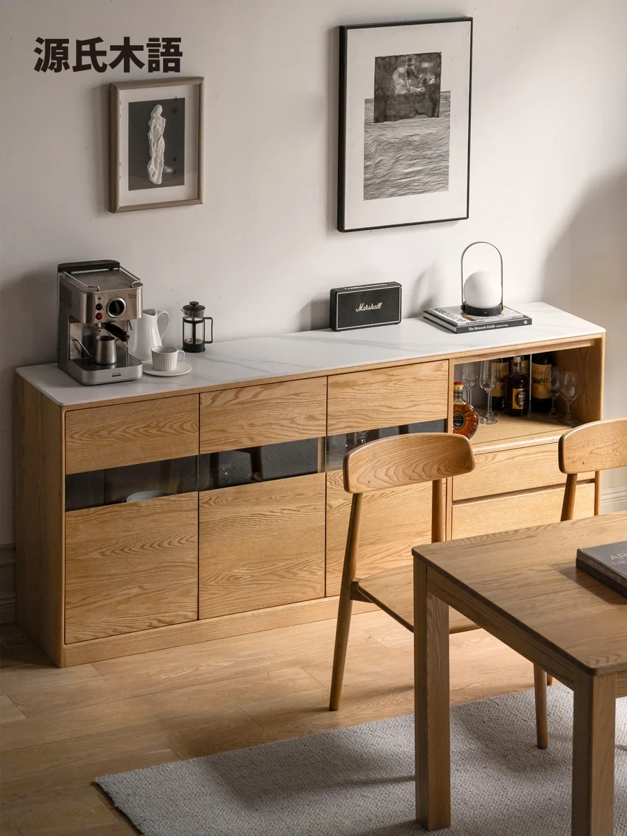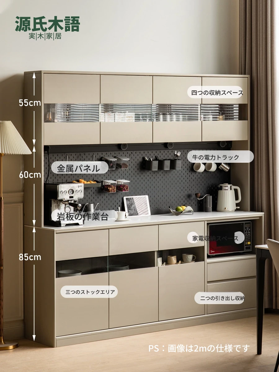 源氏木语の無垢材使用!北欧スタイルの岩板食器棚 - おしゃれなダイニングの必需品、収納力抜群のティーキャビネット&キッチン収納!あなたのお家にぴったりの美しさと機能性を提供します。