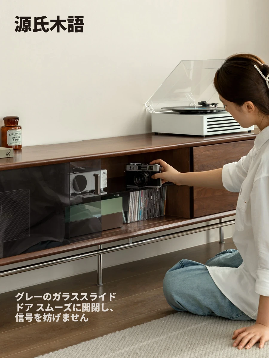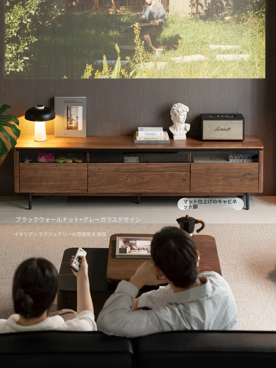 源氏木语イタリアンライトラグジュアリー無垢材テレビキャビネット—高級ブラックウォールナット製、収納力抜群のリビング用テレビボード。洗練されたデザインでお部屋を引き立てます!