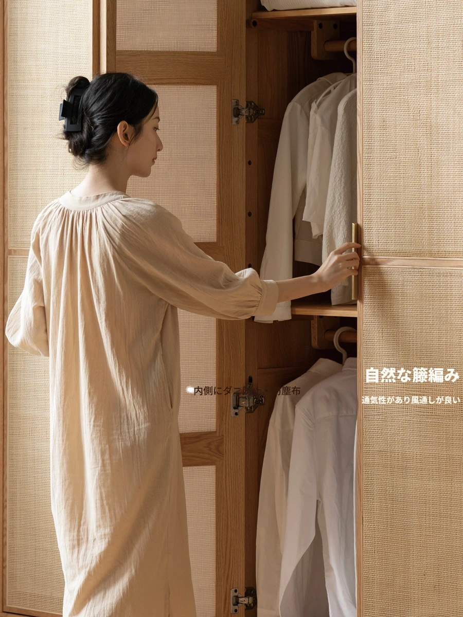 源氏木语 全実木 籐編みクローゼット 家庭用オーク 自由自在に組み合わせ可能 北欧スタイルの寝室収納キャビネット