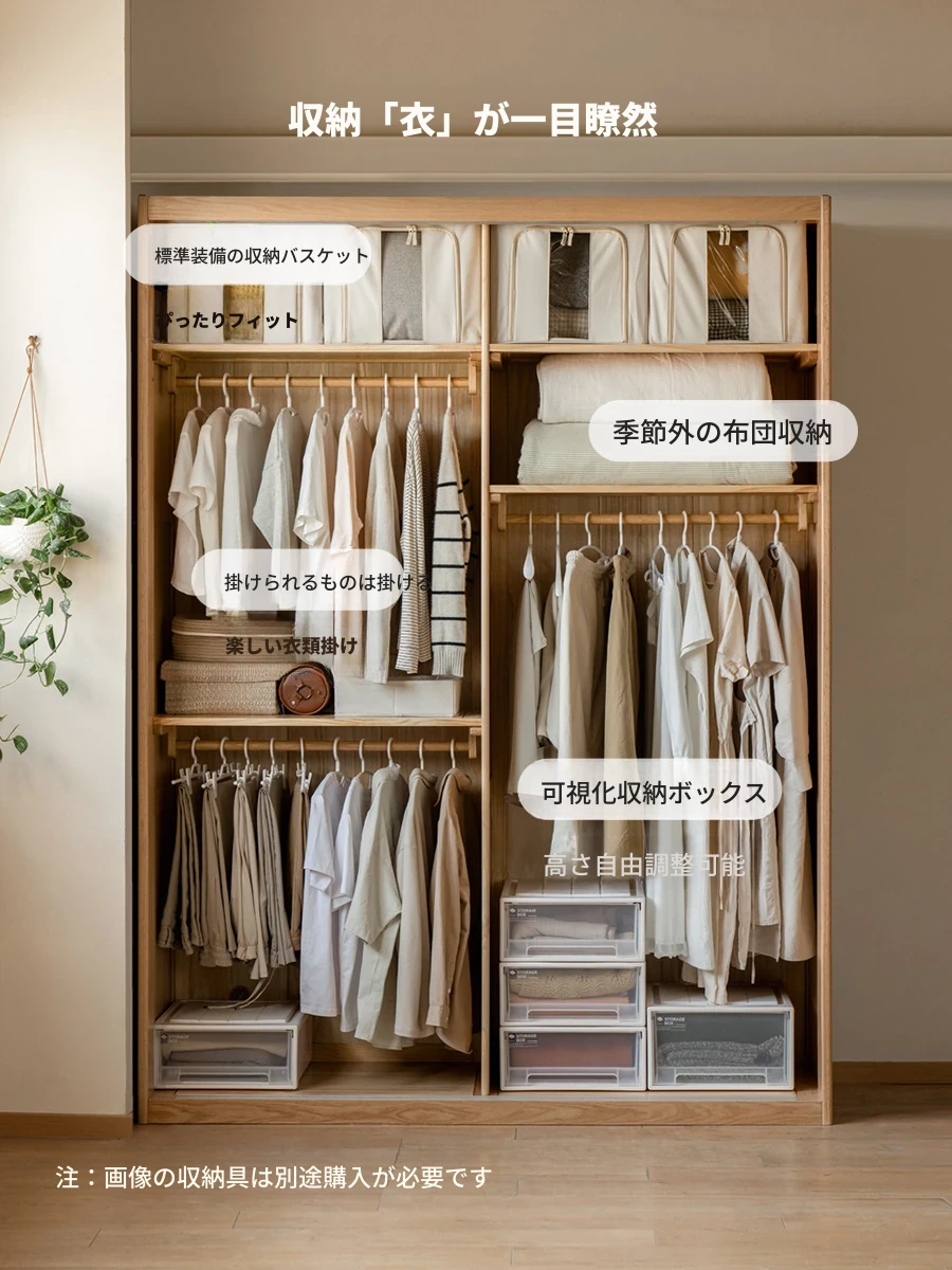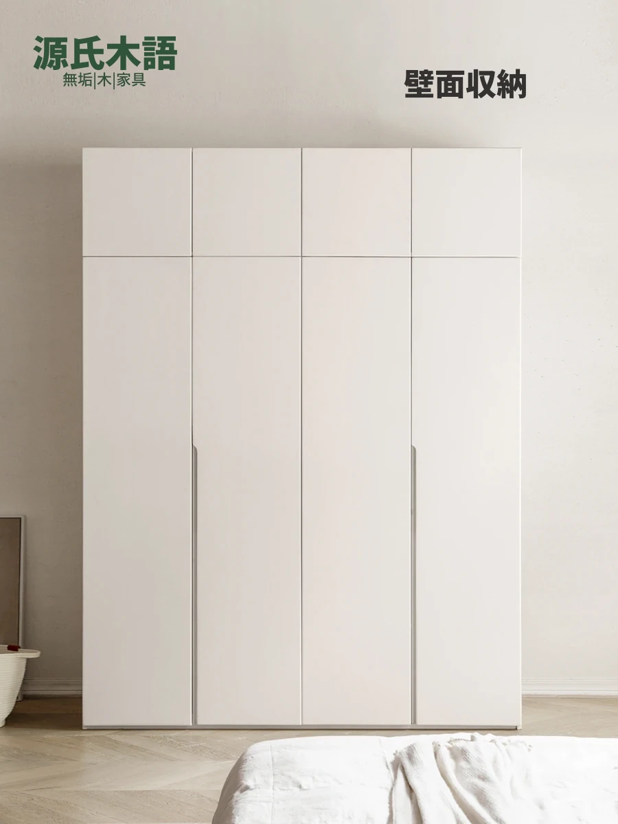 源氏木语の天然木製クローゼット|優雅で洗練されたクリーム色のドア一体型収納|おしゃれな家装アイテム|高級感溢れるインテリア家具
