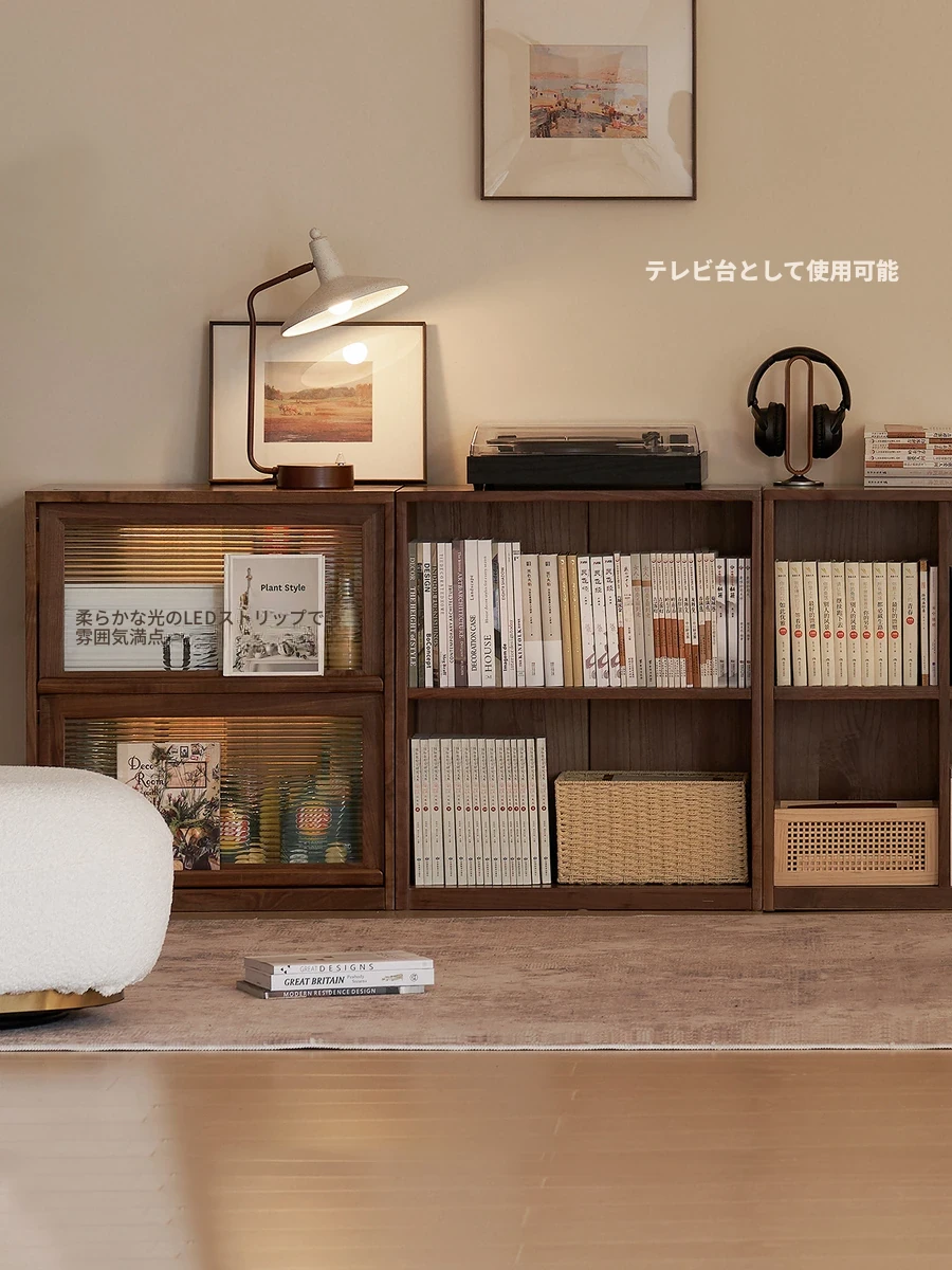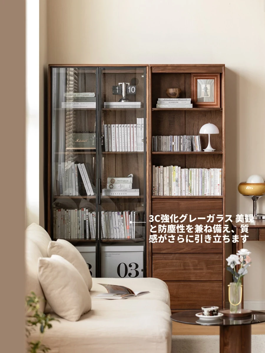源氏木語 植物性無垢材使用のおしゃれな黒胡桃製本棚!壁にぴったりフィット、スタイリッシュに収納できるローテーブル・間仕切りキャビネット付き。お部屋を広々と見せる新しいインテリアをご提案!