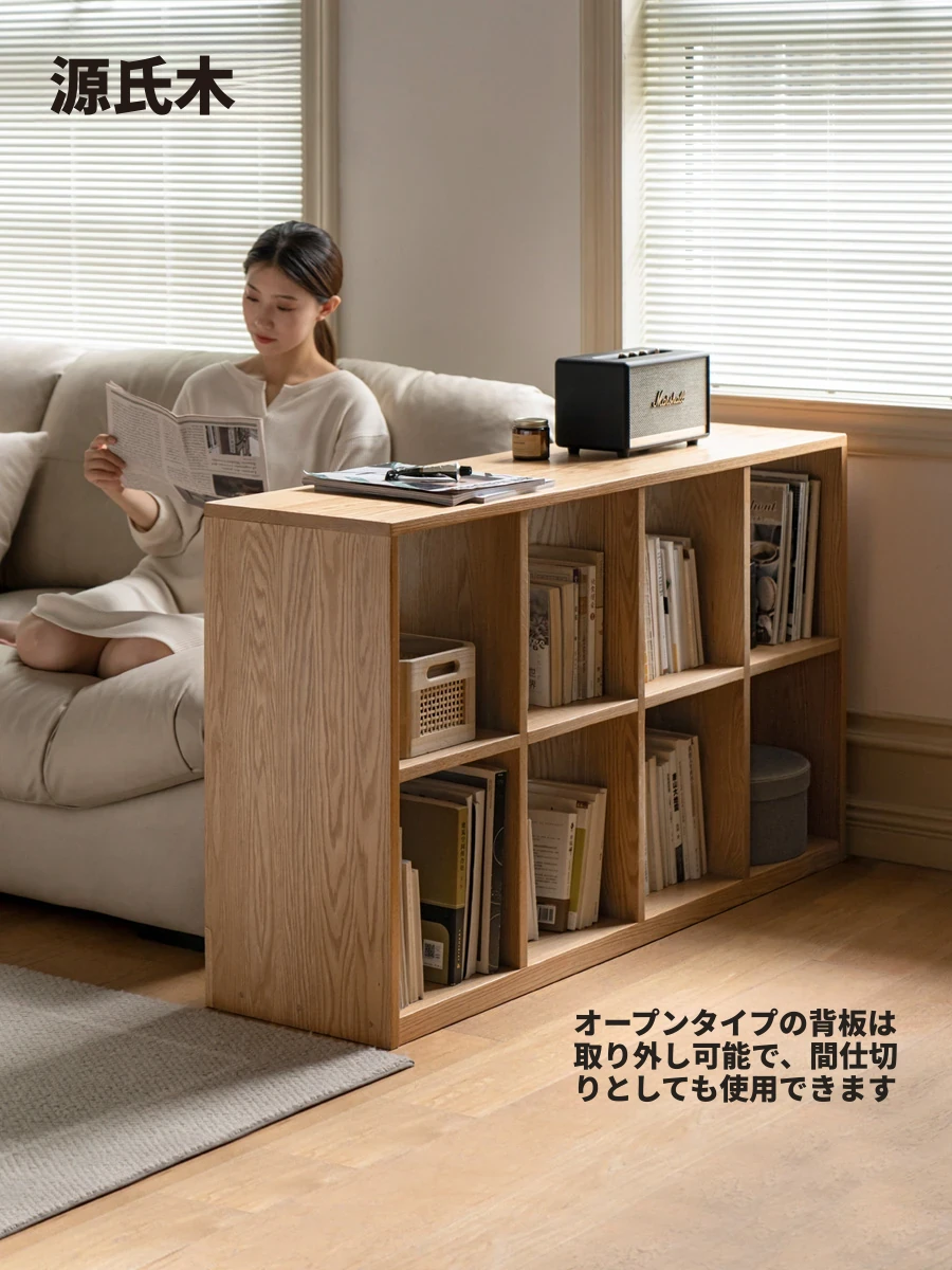 源氏木语のスタイリッシュな無垢材ブックシェルフ - モダンでシンプルなデザインのローポイント収納棚!家庭用にぴったりのコンビネーション書棚&フロアスタンドで、スッキリ美しい空間を実現します。