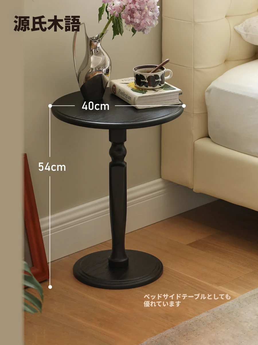 源氏木语 無垢材サイドテーブル モダンなシンプルデザイン 寝室にぴったりな侘寂スタイル 黒いラウンドベッドサイドテーブル 小さな家具でおしゃれな空間を演出!
