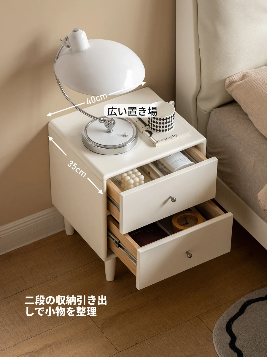 源氏木語 全実木ベッドサイドキャビネット 家庭用 寝室に最適なクリーム風ホワイトの収納棚 シンプル&モダンなデザインで、あなたの寝室をおしゃれに演出!