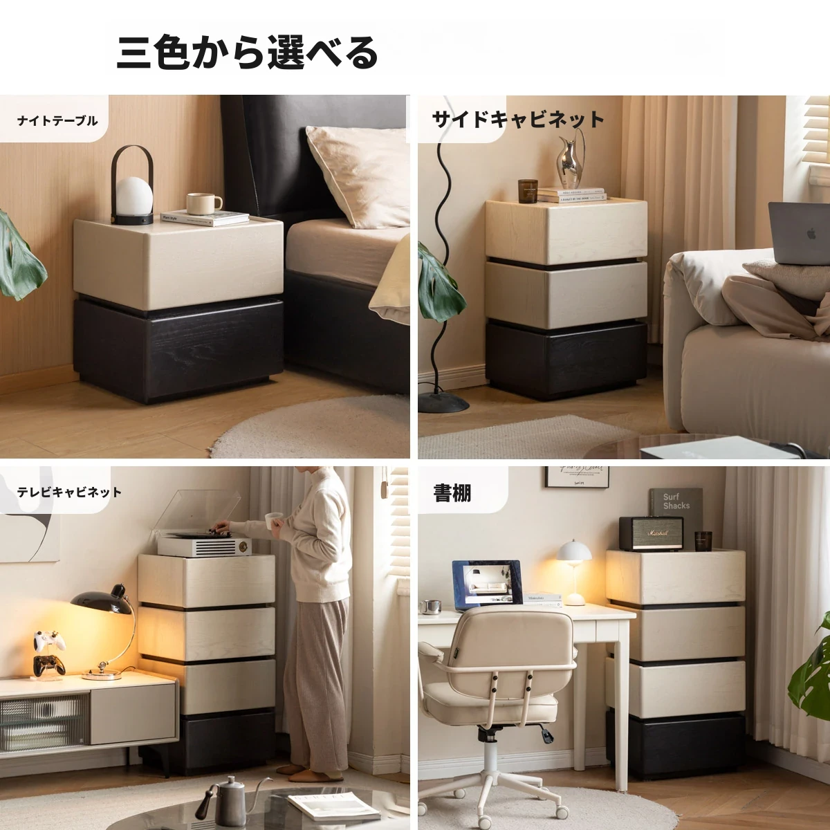 源氏木语 モダン ラグジュアリー オーク材ベッドサイドキャビネット - スタイリッシュな収納と色のコンビネーションで、あなたの寝室を美しく演出する木製サイドテーブル。
