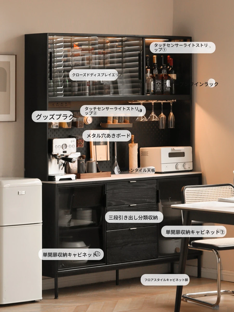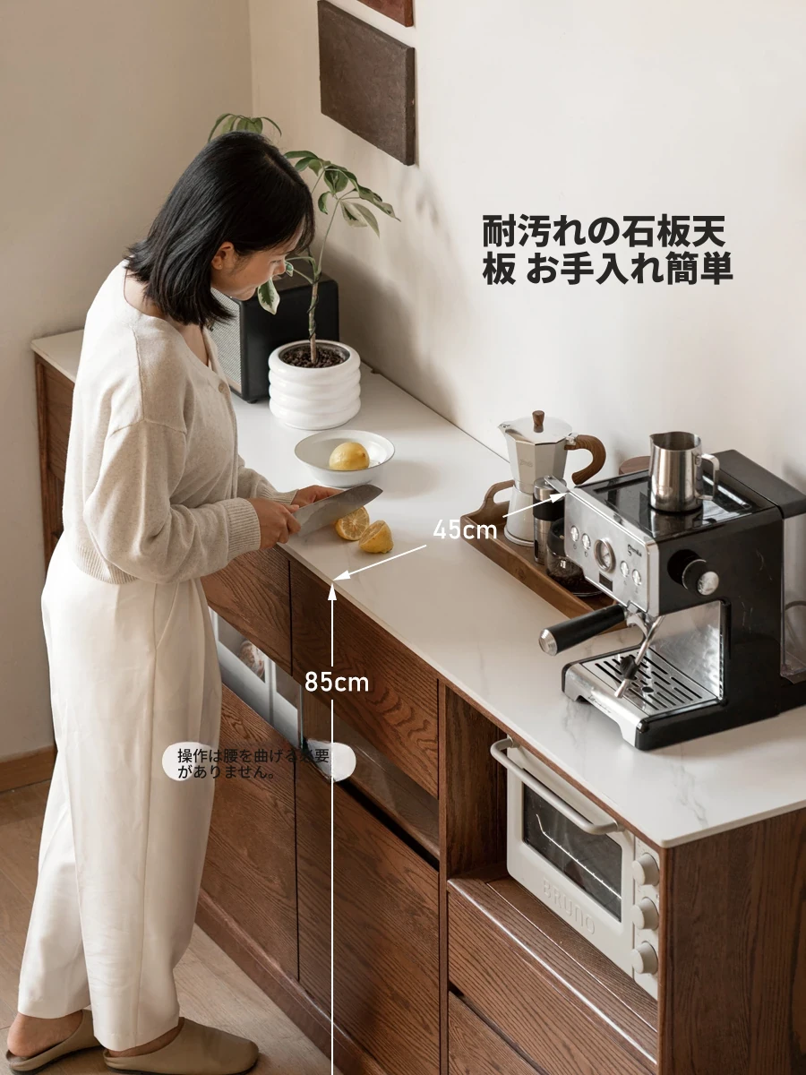 源氏木語の高級感あふれる岩板風サイドボード - 天然木製のお洒落なティーキャビネット!リビングやキッチンにピッタリな黒のオーク製ボウルキャビネット。家族団らんの時間をさらに特別に演出します!