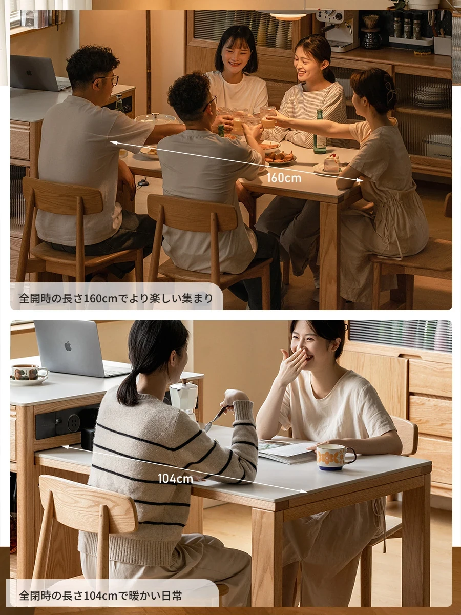 源氏木语の無垢材アイランドダイニングテーブル|伸縮機能付きのモダンなオーク製サイドキャビネット|多用途でスタイリッシュな空間を演出!