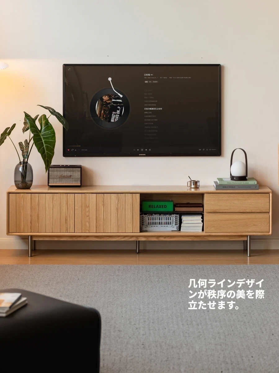 源氏木语の無垢材テレビボード|モダンでシンプルなリビング収納|オーク素材使用の魅力的なテレビキャビネット【高品質・耐久性抜群】