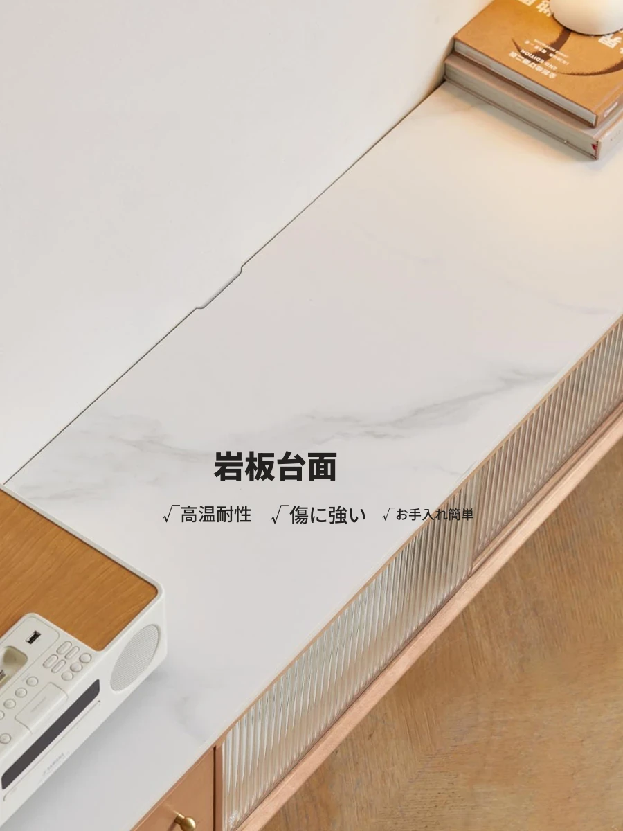 源氏木语 無垢材ダイニングサイドキャビネット - ストーンボード収納棚、食器棚、ナッツ色、電子レンジ置きにも最適! 整理整頓で美しいキッチンを実現!