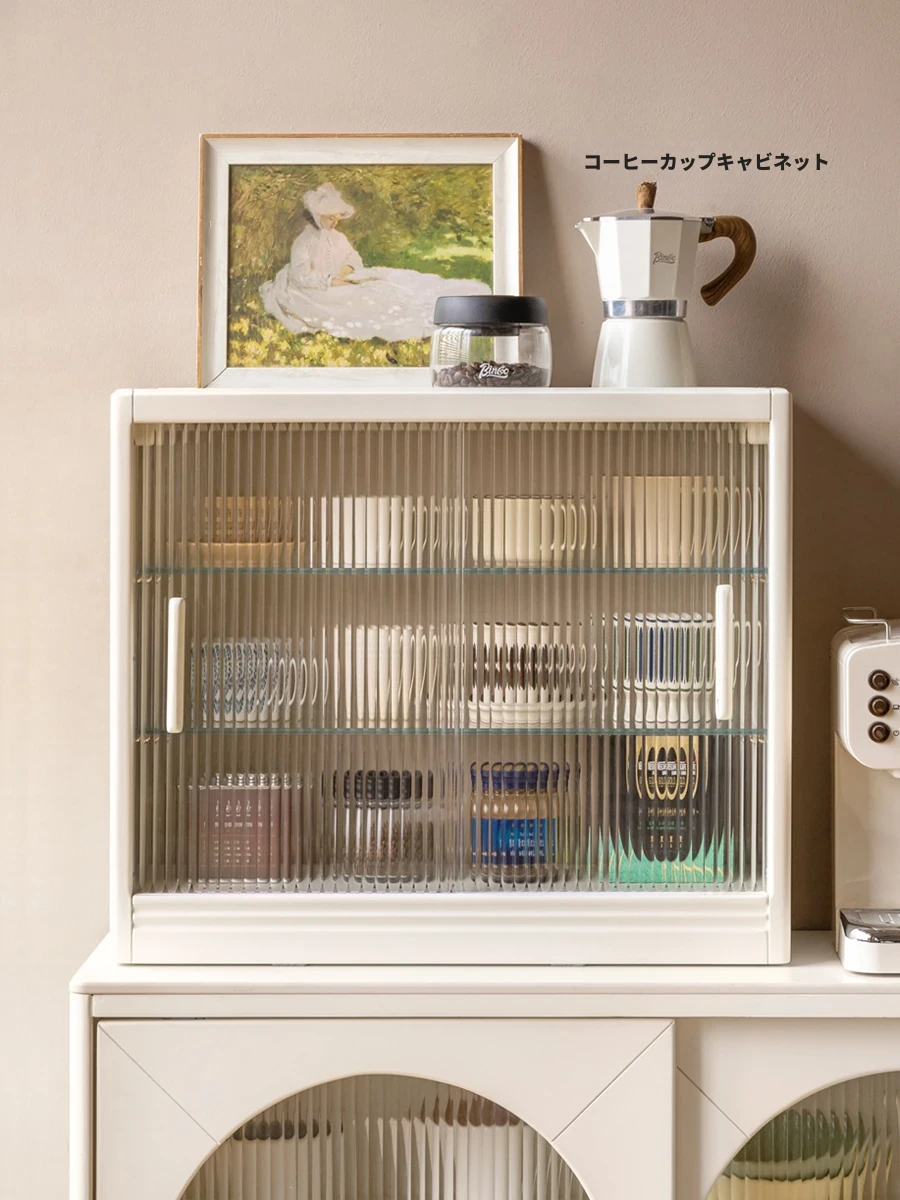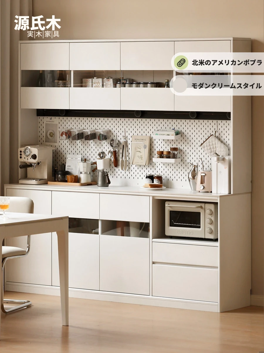 源氏木语 全実木のカフェスタイル壁面収納 高さ調整可能なホワイトキャビネット - クリーム風の美しいデザインでお茶や軽食を楽しむための完璧な収納家具!