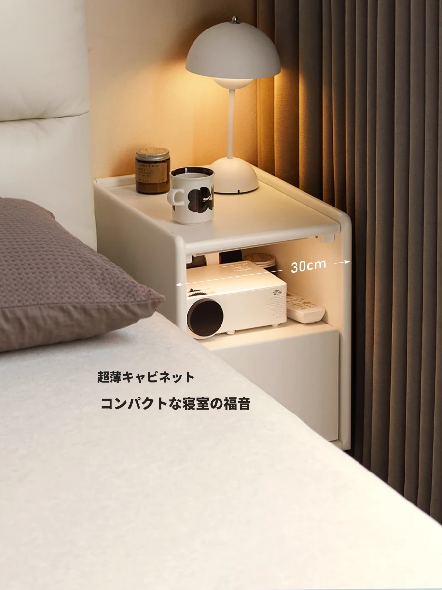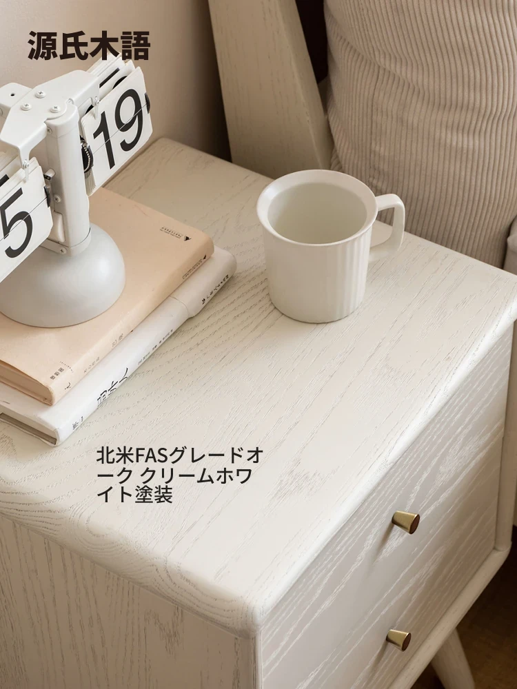 源氏木语の無垢材ダイニングキャビネット - クリーム風のベッドサイドキャビネットで、シンプルでモダンなデザイン。おしゃれなホワイト収納で、あなたの寝室を美しく整えます!