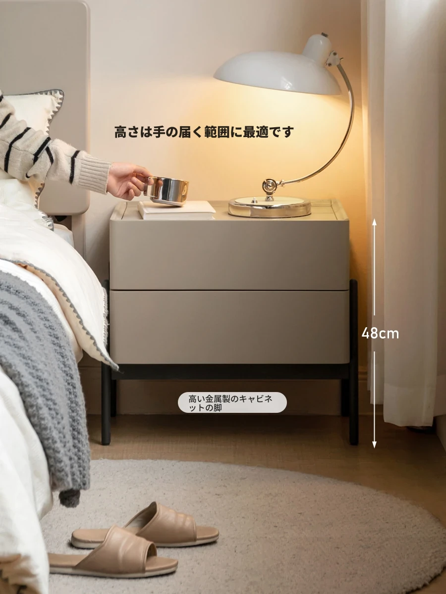 源氏木语現代風ベッドサイドキャビネット - 小型住宅にぴったりな軽奢華デザイン、スリムな収納力でお部屋をスッキリ整頓!引き出し付きで使い勝手も抜群な理想のナイトテーブル。