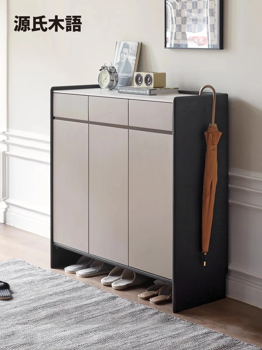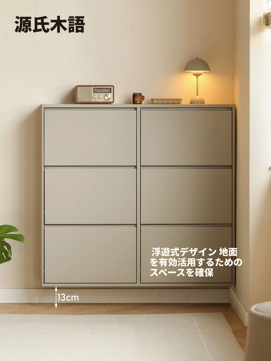 源氏木语超薄スリム天然木製シューズキャビネット|軽やかな贅沢感|家庭用玄関収納|リビングにもぴったりな壁掛けシューズラック!