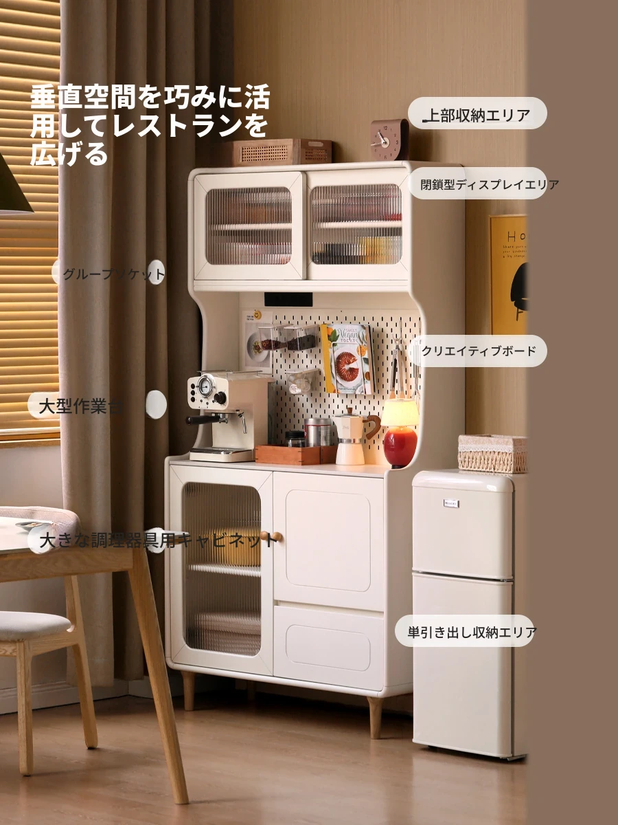 源氏木语本物の木製ロック板サイドキャビネット|クリーム風デザインでおしゃれ!収納力抜群のキッチン・ダイニング用、シンプルで機能的なストレージキャビネット。