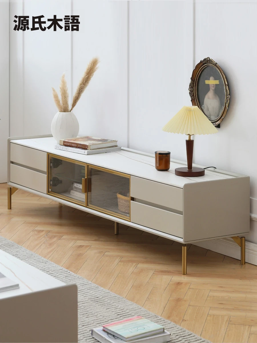 源氏木語のラグジュアリーな天然石調テレビボード|モダンでシンプルなデザインのイタリアンスタイル|小型住宅にぴったりなローテーブルとキャビネットのコンビネーション!