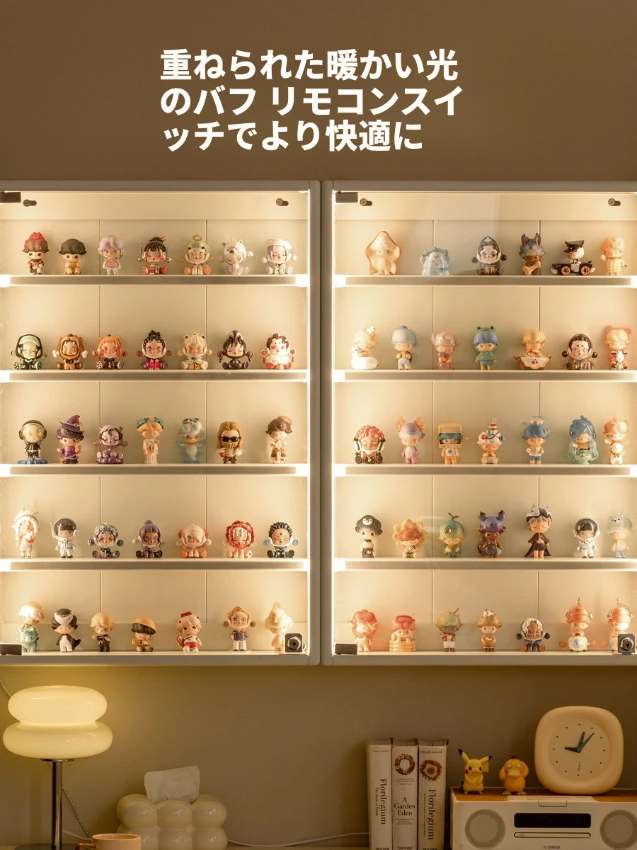 源氏木语の実木製ウォールディスプレイキャビネット - ホワイト超スリムデザイン、秘密のブラインドボックス収納、クリーム風のフィギュア展示に最適!あなたのコレクションを美しく魅せるおしゃれなキャビネット。