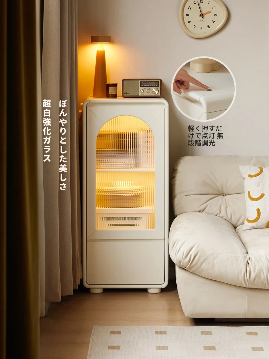 源氏木语のリビング用本格木製テレビキャビネット!白とクリームの柔らかい風合いで、コンパクトな居住空間にもぴったり。スタイリッシュな立て置き型の展示キャビネットで、お部屋をおしゃれに演出します!