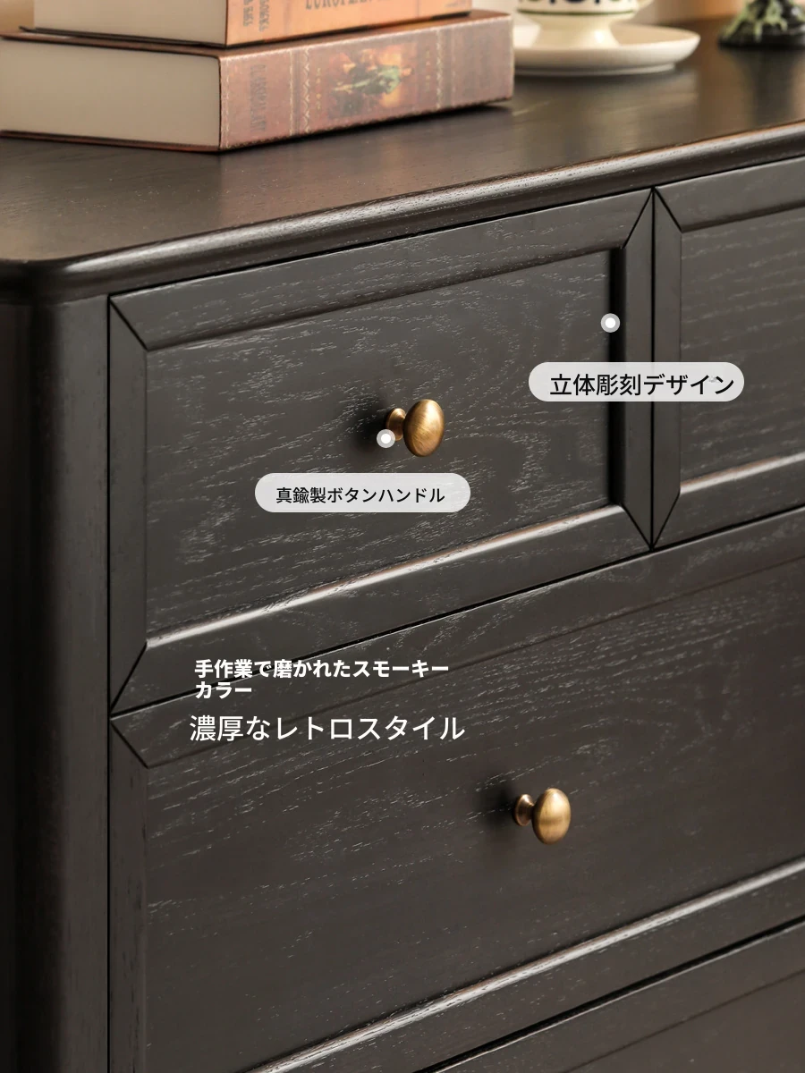 源氏木語の天然木製シンプルアメリカンスタイル収納キャビネット|ブラックオークのセブンチェスト|ベッドサイドにぴったりのエレガントな収納ソリューション