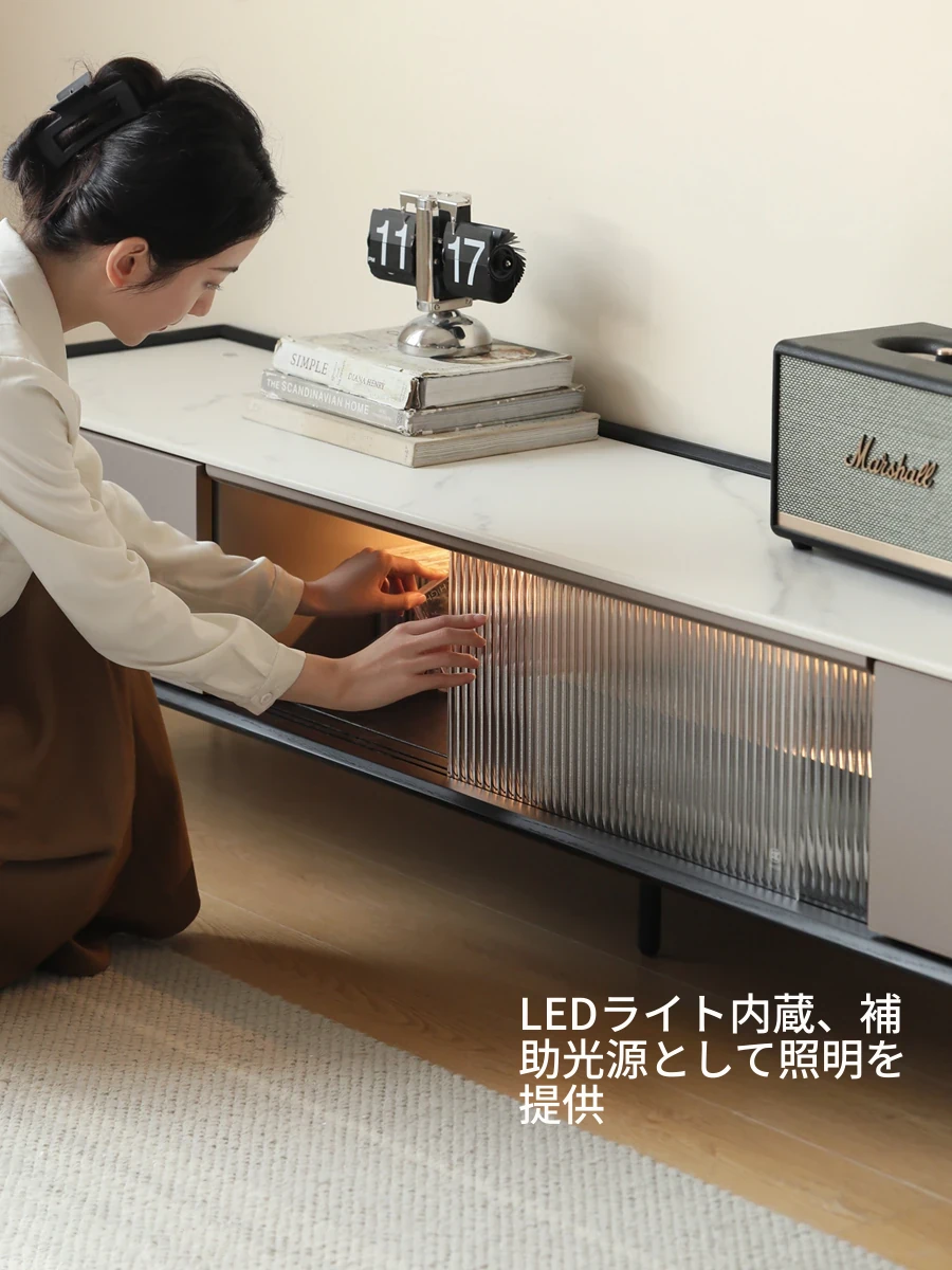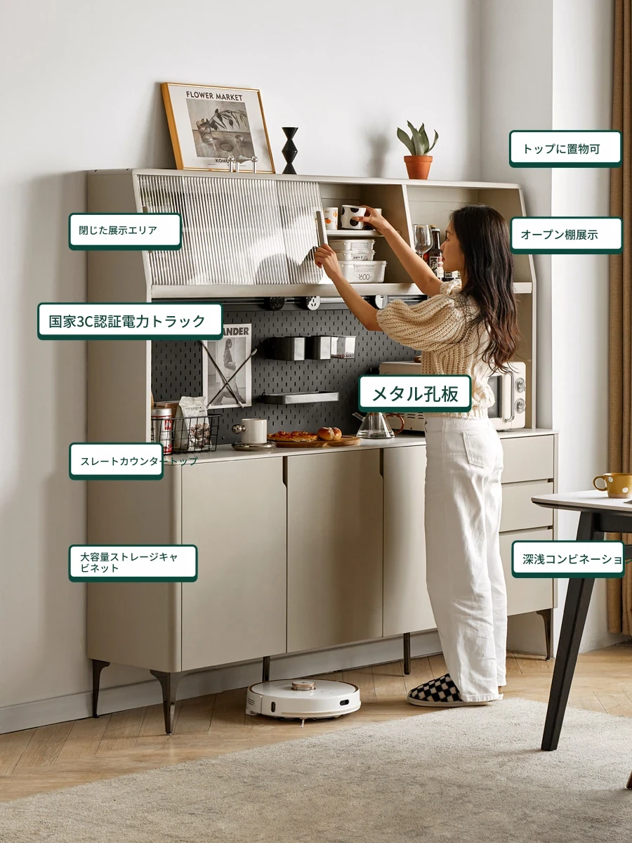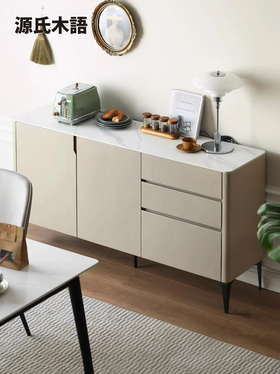 源氏木语の無垢材ダイニングサイドボード|軽やかでラグジュアリーな岩板デザイン|シンプルでスタイリッシュな収納キャビネット|家庭用の便利なホールディングボード一体型ハイキャビネット