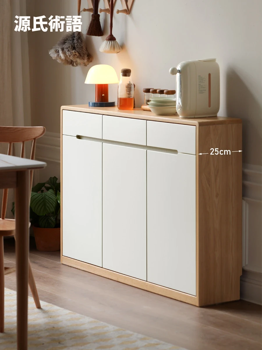 源氏木語スリムでスタイリッシュなダイニングサイドキャビネット - 厨房やリビングに最適な収納力!高品質無垢材使用の実用型ティーキャビネットで、おしゃれな空間を演出します!