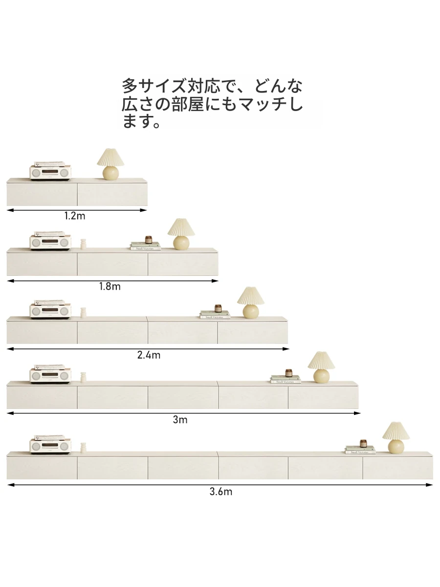 源氏木語の無垢材テレビボード|シンプルでスタイリッシュなリビング用吊り下げ収納キャビネット|白いクリーム風のオーク製サイドボードで居心地の良い空間を演出!