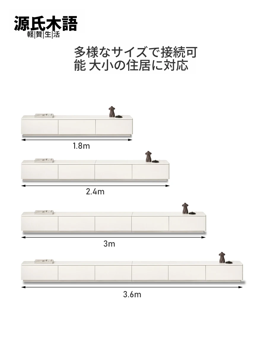 源氏木語の天然木製テレビキャビネット - ラグジュアリーな小型リビングにぴったり!収納力抜群のシンプルなデザイン、白のハイ脚タイプでおしゃれな部屋作りをサポートします。